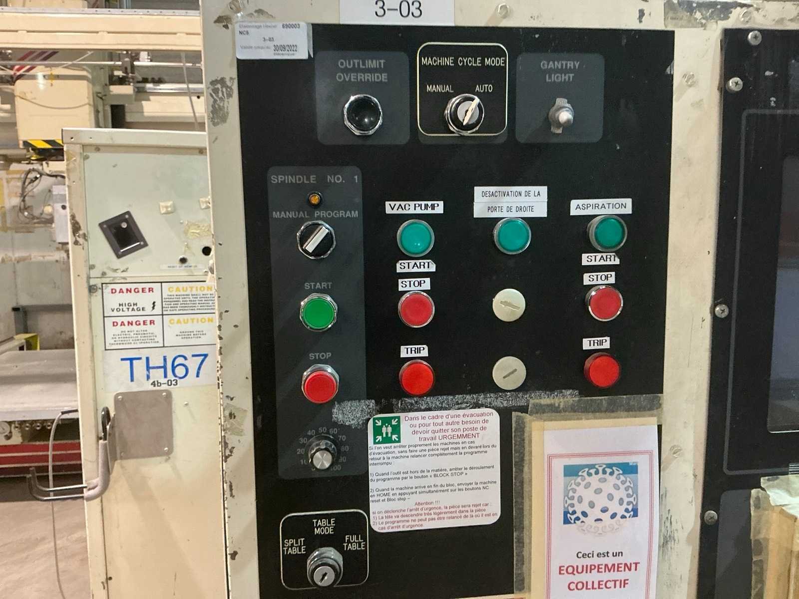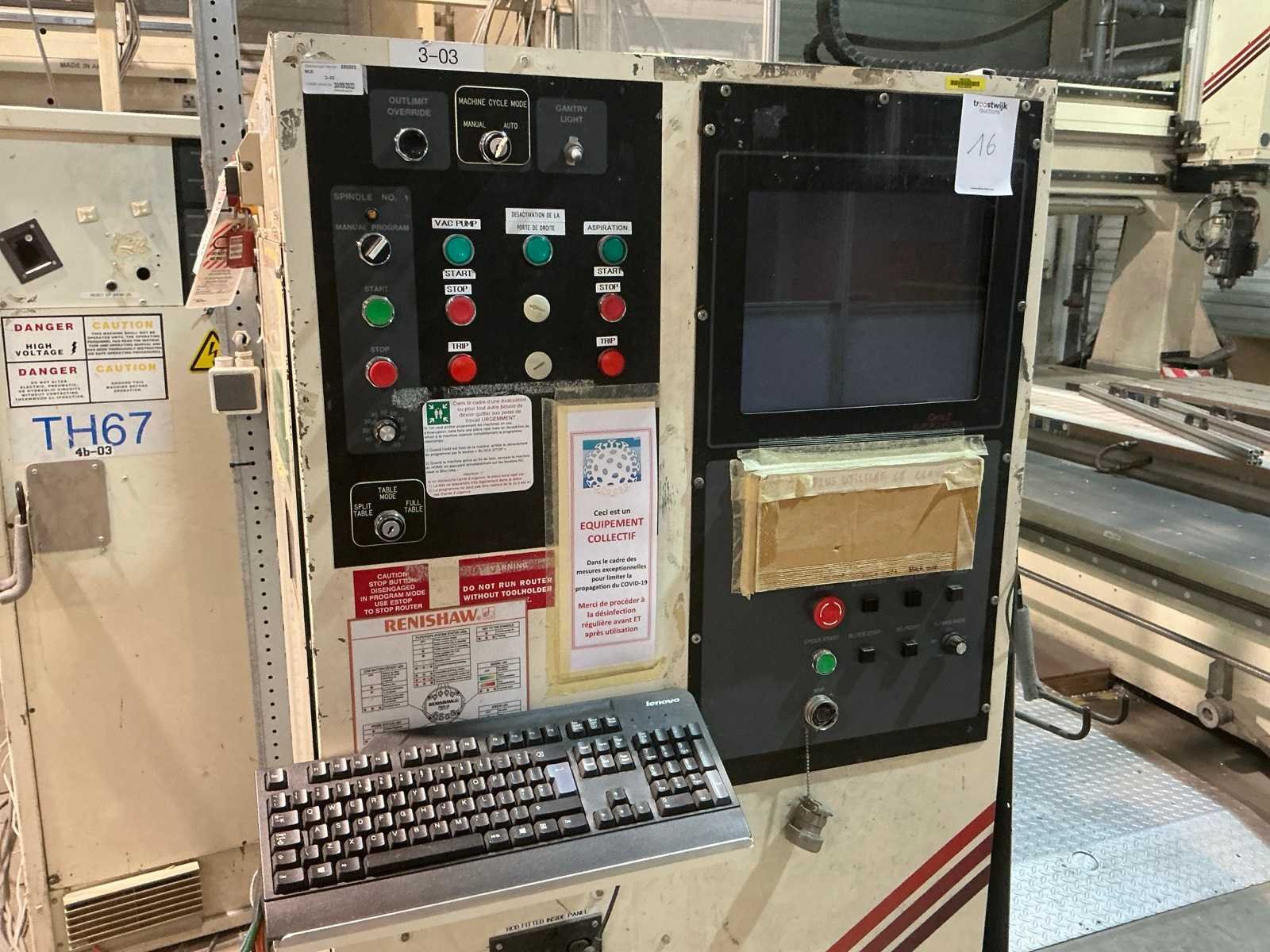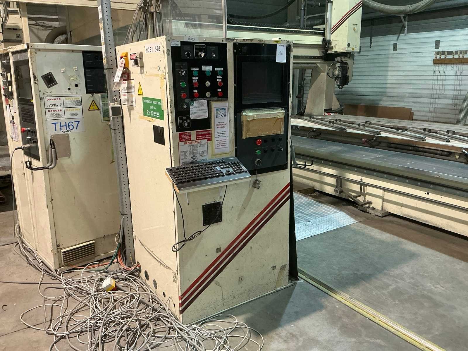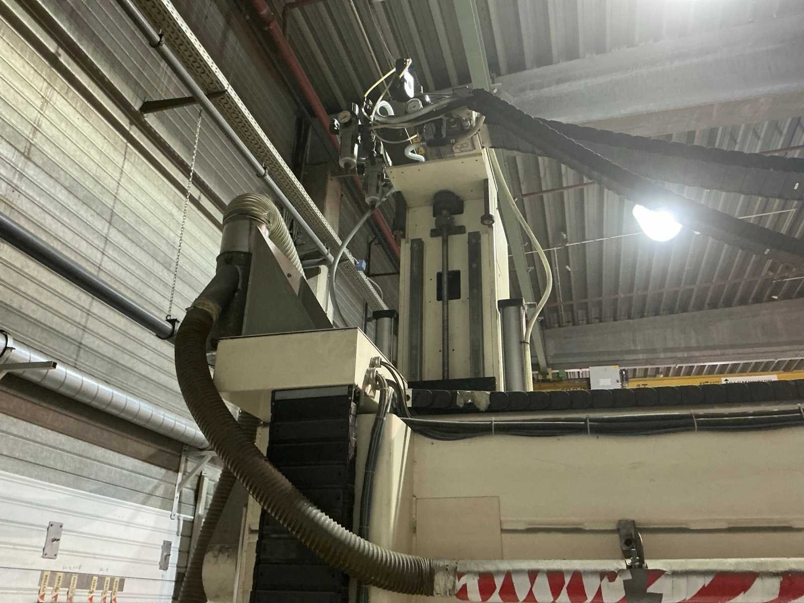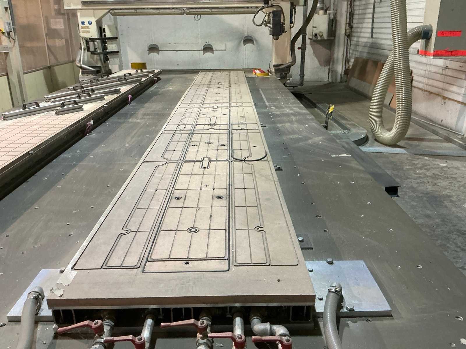 Tafel voorzien van 2x ‘Grunewald’ Sonaca vacuümtafel; 5700x600 mm; No Verplaatsing x-as: 3050mm Verplaatsing y-as: 6000mm Verplaatsing z-as: 550mm Tafel afmeting l: 6100mm Tafel afmeting b: 3050mm Aansluiting: 400V Totale afmeting L: 8200mm Totale afmeting Breedte: 4100mm Totale afmeting Hoogte: 3500mm