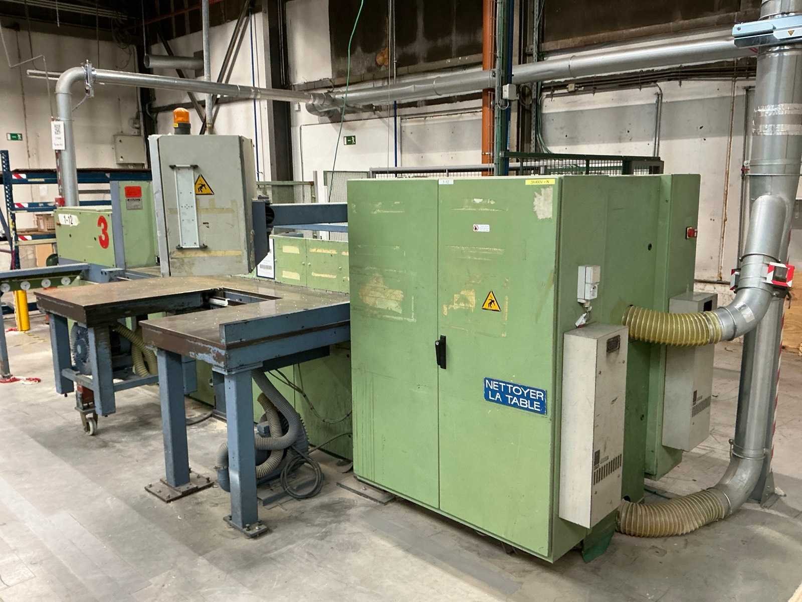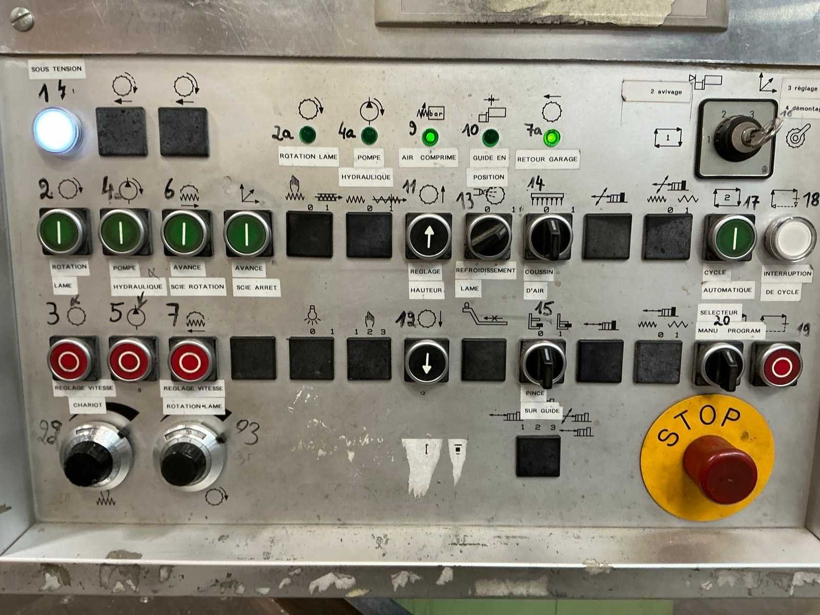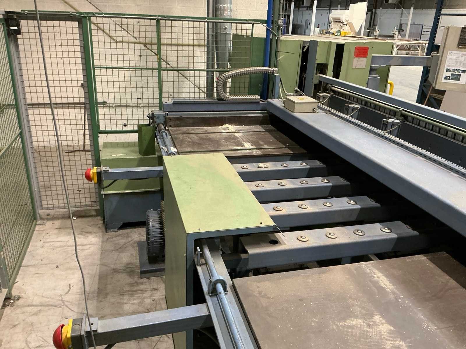 No Merk: Smid Bouwjaar: 1990 Serienummer: 533-04 Aansluiting: 400V Zaagblad Ø: 400mm Zaaglengte: 3000mm Totale afmeting L: 6450mm Totale afmeting Breedte: 3700mm Totale afmeting Hoogte: 2100mm Besturing, merk, type: Siemens simatic Lengte aanvoerrollenbaan: 1350mm Lengte uitvoerrollenbaan: 1500mm