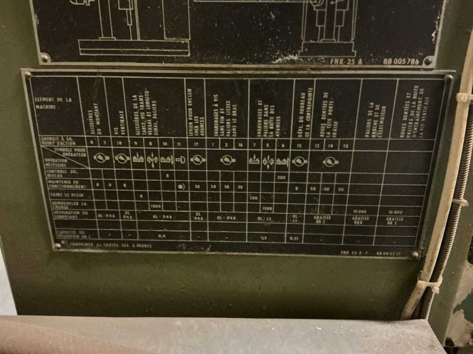 No Merk: TOS KURIM Type: FNK 25 A Verplaatsing x-as: 1170mm Verplaatsing y-as: 750mm Verplaatsing z-as: 950mm T-gleuf opspantafelafmeting L: 1240mm T-gleuf opspantafelafmeting B: 250mm Koelmiddelpomp: true Motorvermogen (kW): 4kW Aansluiting: 380V Afmeting l: 1800mm Afmeting b: 1870mm Afmeting h: 2420mm