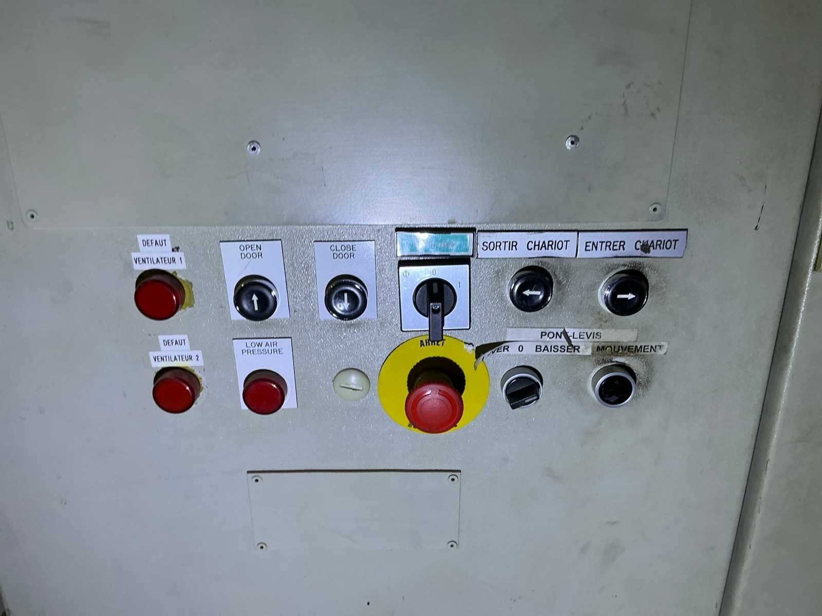 Elektrisch vermogen 144 kW; met filter buitenzijde gebouw hal 5 No Merk: Redditch Kamer afmeting l: 4500mm Kamer afmeting b: 1800mm Kamer afmeting h: 2250mm Temperatuurbereik max.: 350°c Aansluiting: 400V