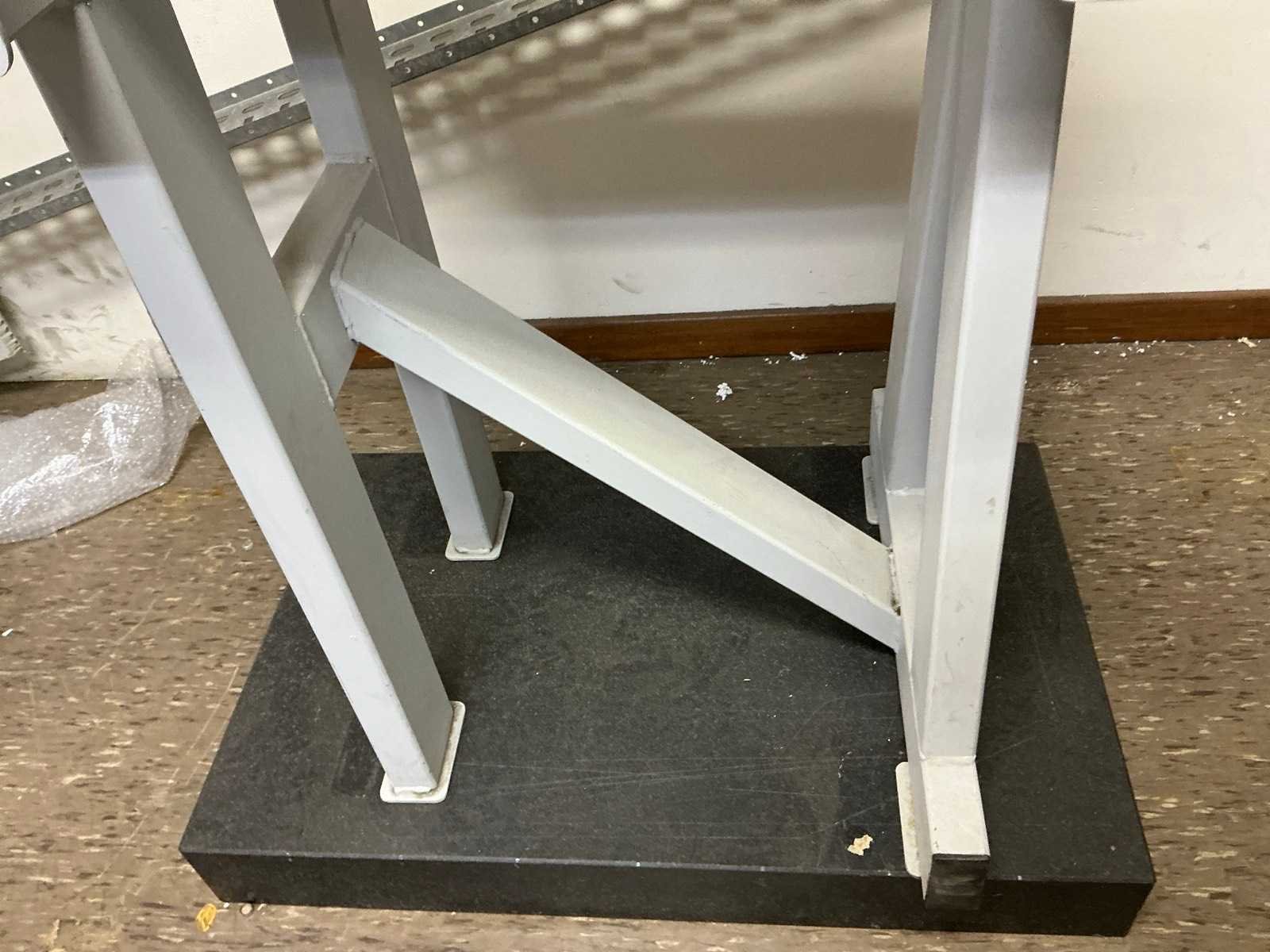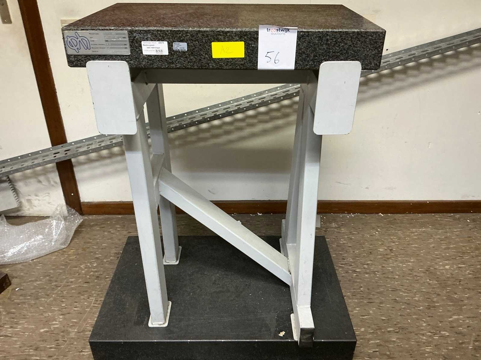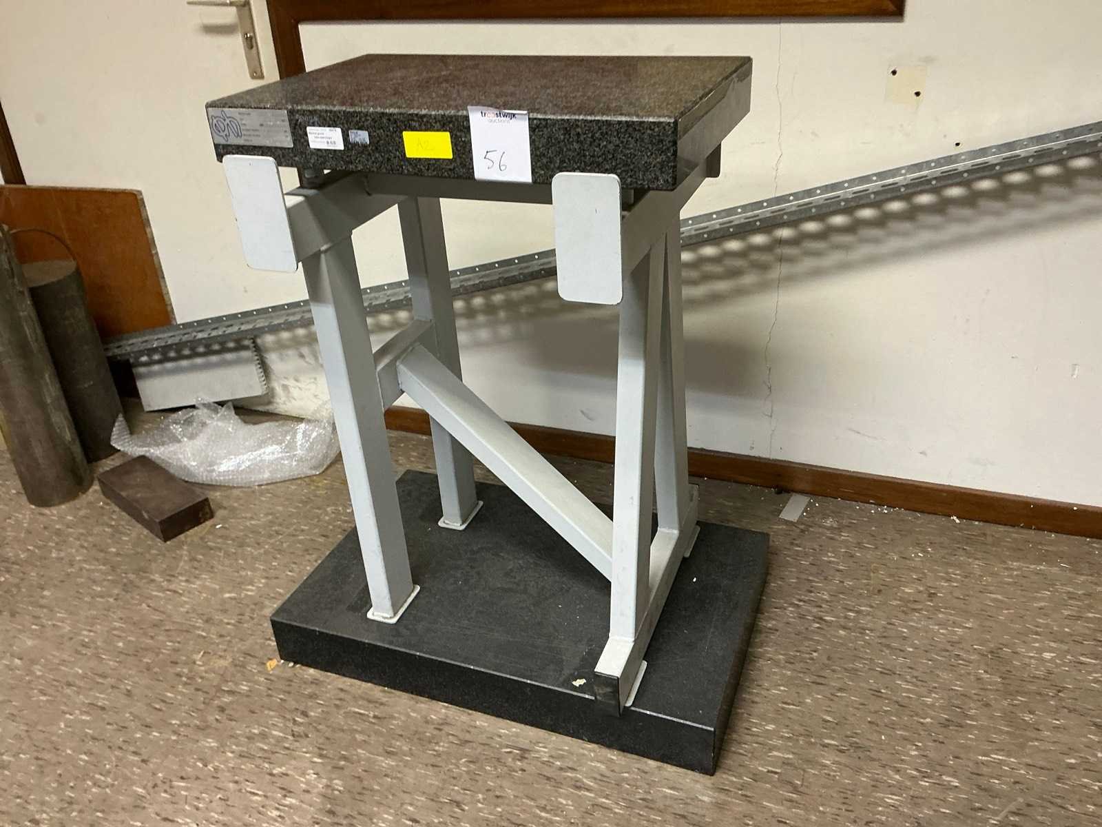 Stalen onderbouw, dikte blad = 8cm; inclusief een ander graniet blad 80x50x10cm LxBxH No Merk: PELT & HOOYKAAS Bouwjaar: 1990 Graniet: true Blad afm. l: 630mm Blad afm. b: 400mm Totale afmeting L: 630mm Totale afmeting Breedte: 400mm Totale afmeting Hoogte: 890mm