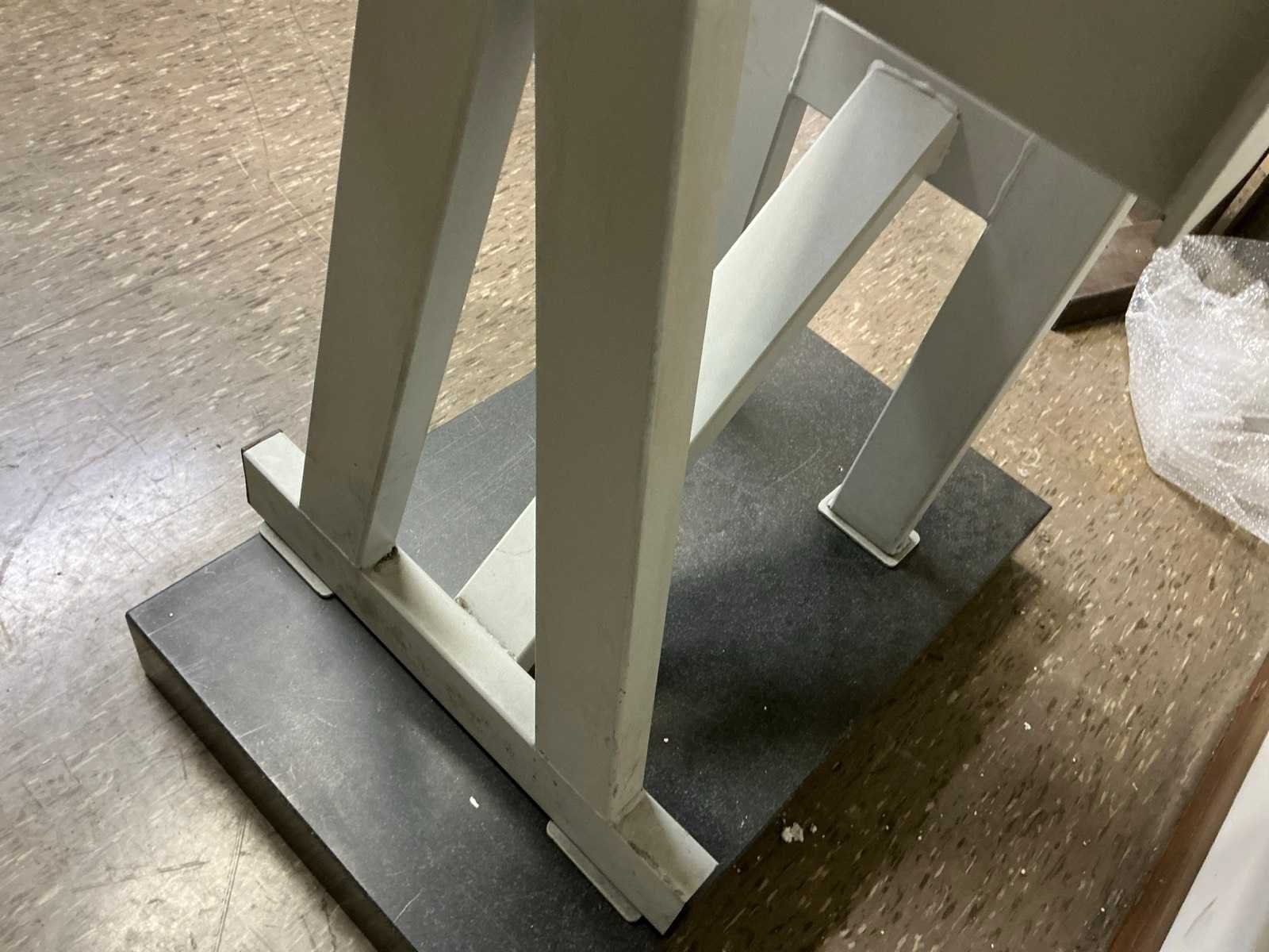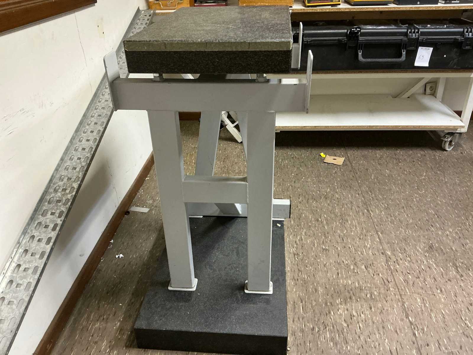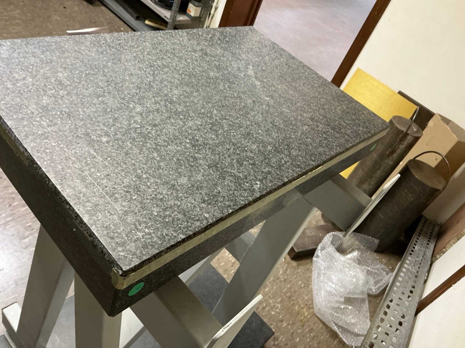 Stalen onderbouw, dikte blad = 8cm; inclusief een ander graniet blad 80x50x10cm LxBxH No Merk: PELT & HOOYKAAS Bouwjaar: 1990 Graniet: true Blad afm. l: 630mm Blad afm. b: 400mm Totale afmeting L: 630mm Totale afmeting Breedte: 400mm Totale afmeting Hoogte: 890mm