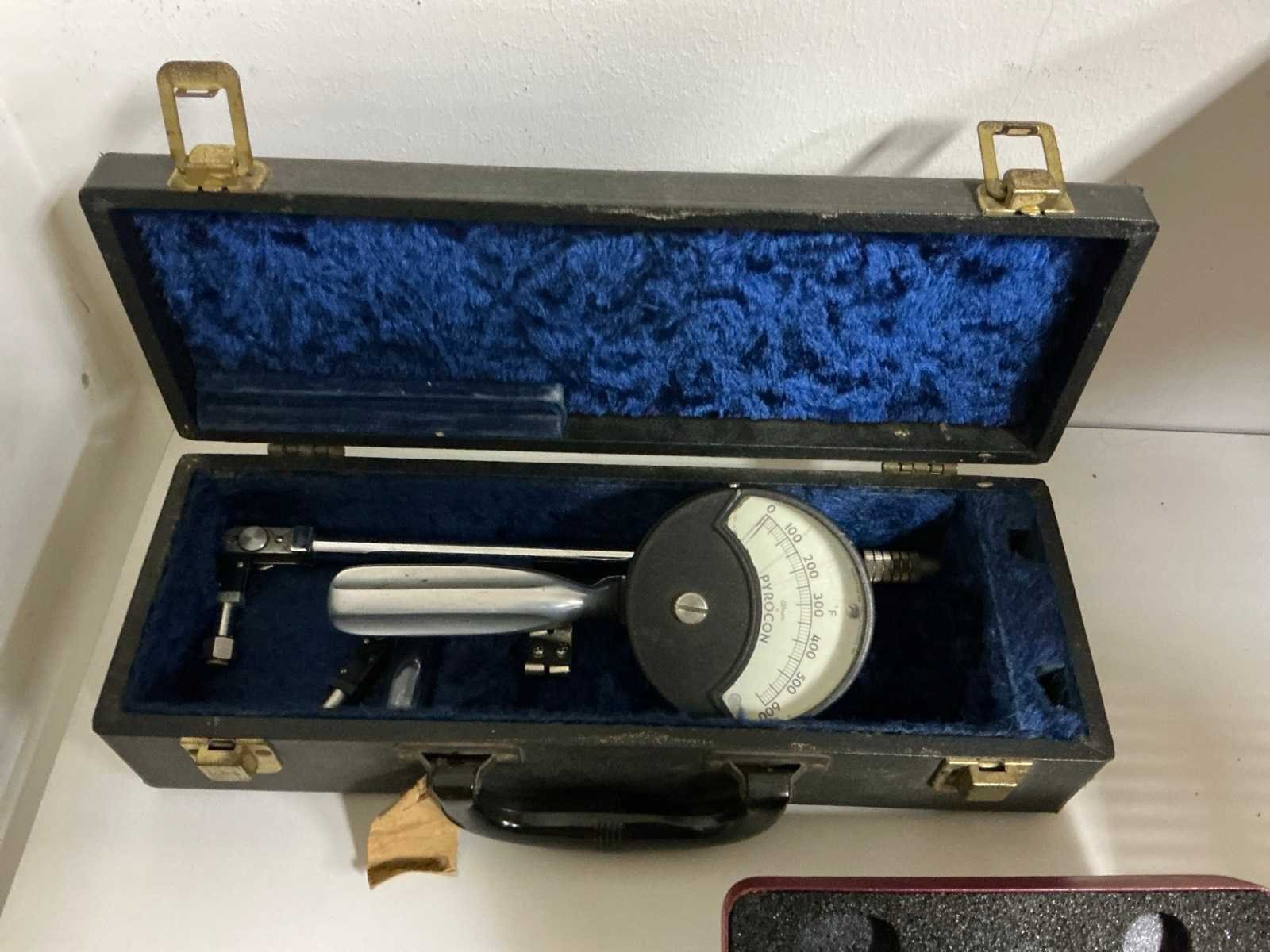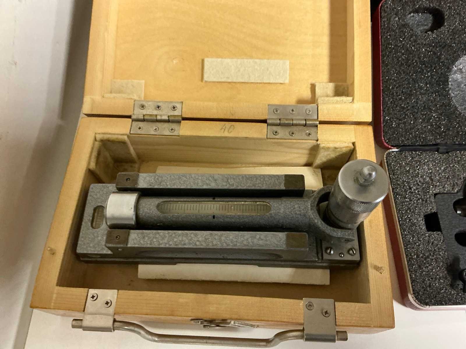 1x precisie waterpas; 1x Pyrocon thermometer; 1x Starrett micrometer No