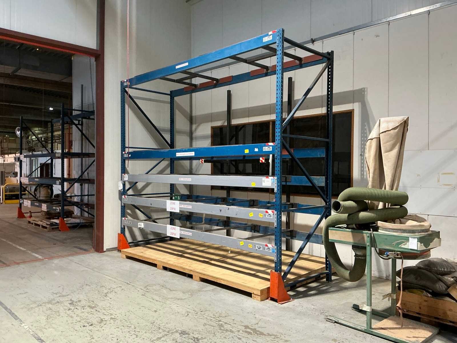 64x ligger 3400 mm; 10x ligger 3500 mm; 30 x ligger 3300 mm; 12x ligger 3700 mm; 10x ligger 4000 mm; diverse types stellingen; No Sectie diepte: 1300mm Sectie afm. h: 3300mm Aantal staanders: 36 Demontabel: true Materiaal: Staal