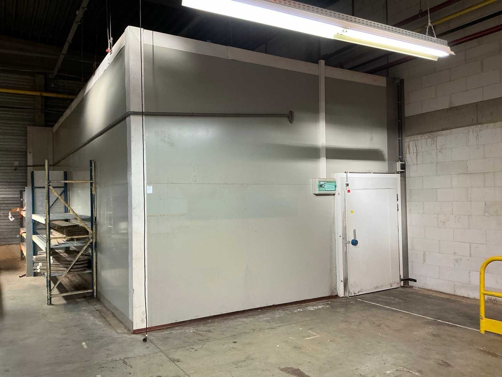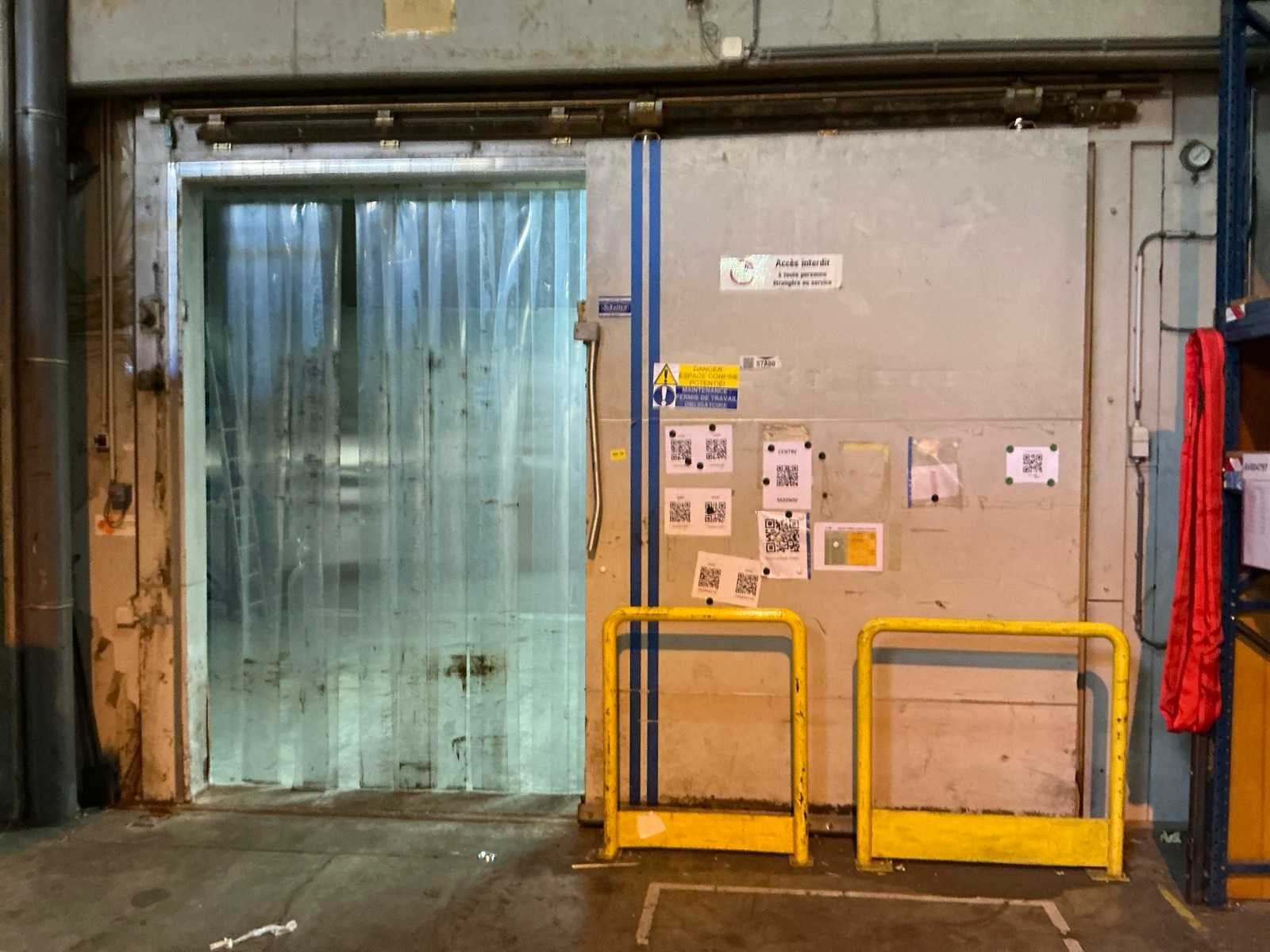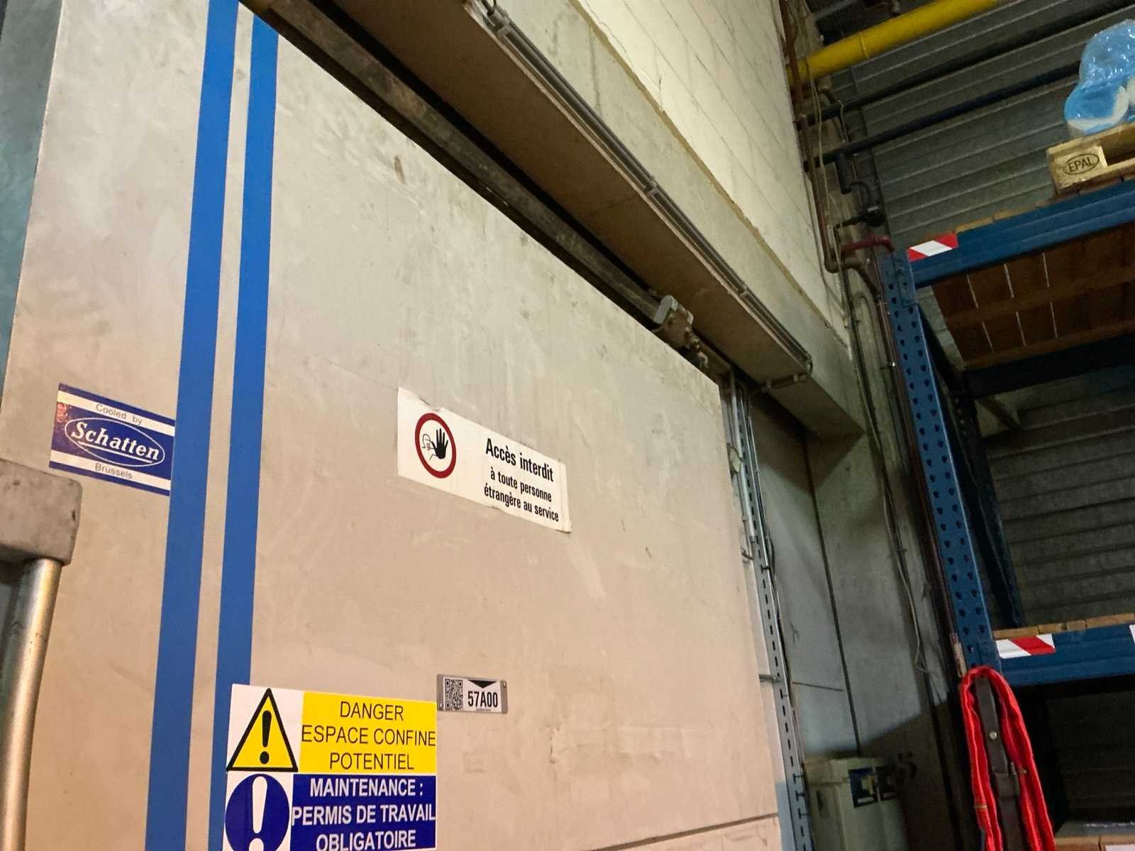 Voorzien van 1x geïsoleerde deur; deuropening 191x125 cm; 1x geïsoleerde schuifdeur; deuropening 195x298 cm; voorzien van 3 koelcompressoren aan buitenkant gebouw hal 5 No Totale afmeting L: 9400mm Totale afmeting Breedte: 5360mm Totale afmeting Hoogte: 4200mm