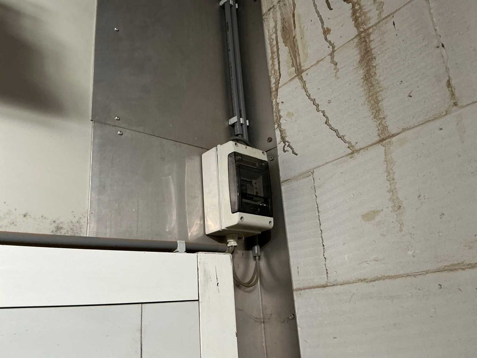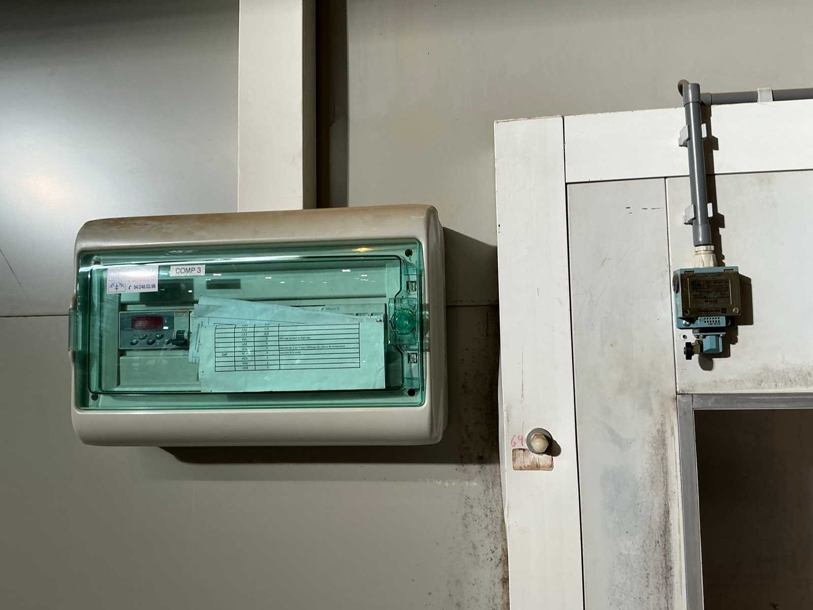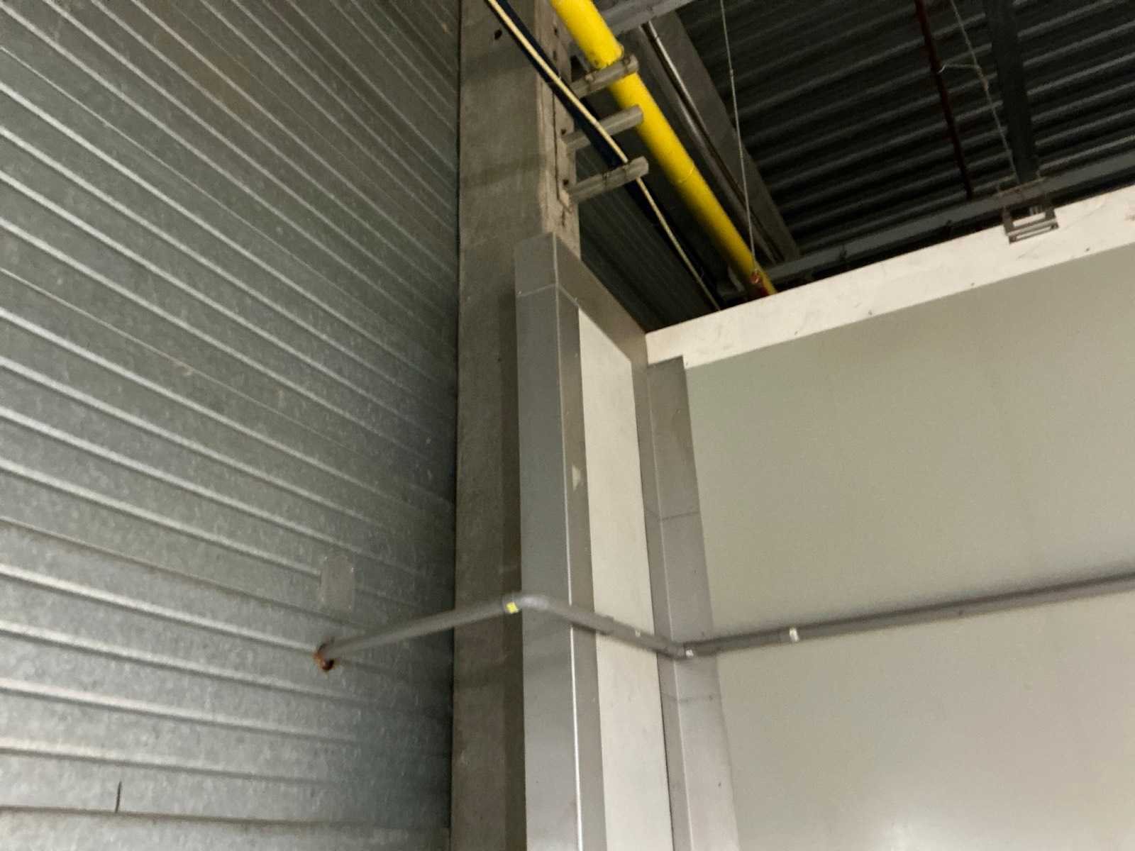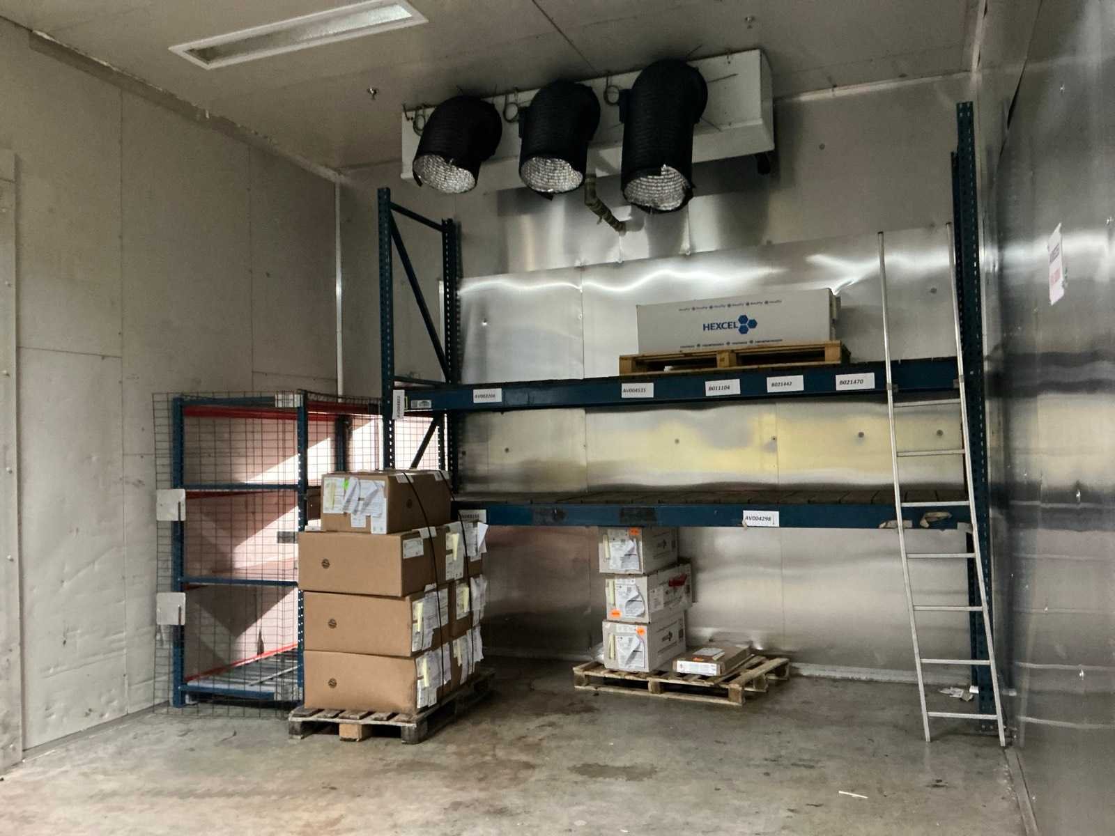 Voorzien van 1x geïsoleerde deur; deuropening 191x125 cm; 1x geïsoleerde schuifdeur; deuropening 195x298 cm; voorzien van 3 koelcompressoren aan buitenkant gebouw hal 5 No Totale afmeting L: 9400mm Totale afmeting Breedte: 5360mm Totale afmeting Hoogte: 4200mm