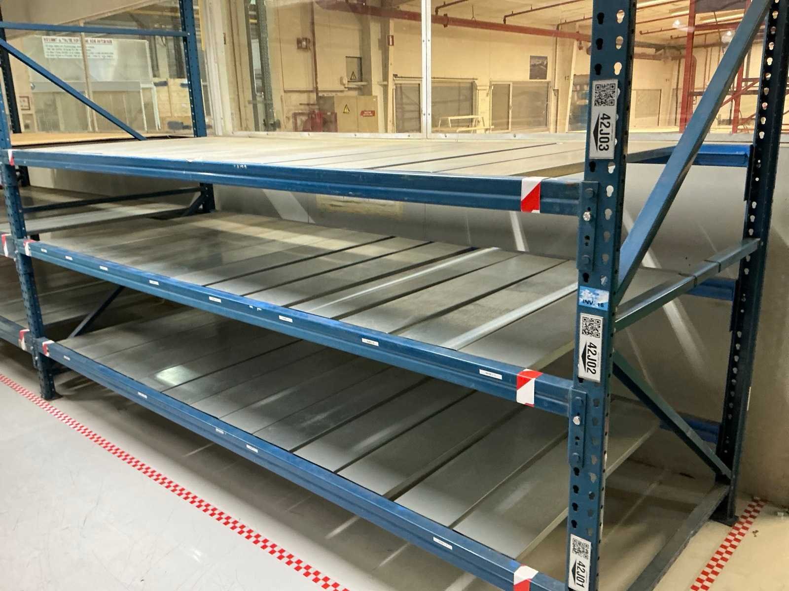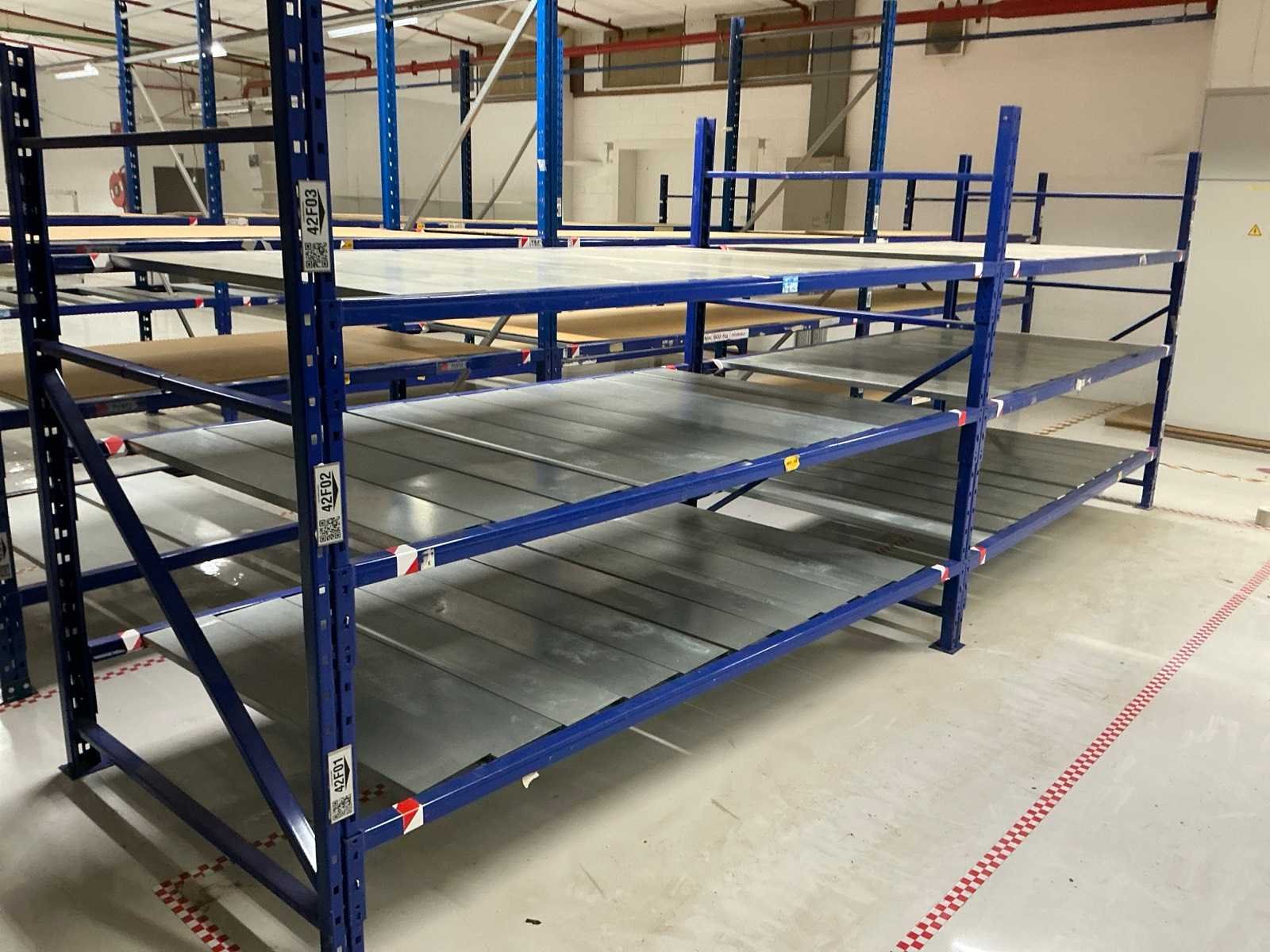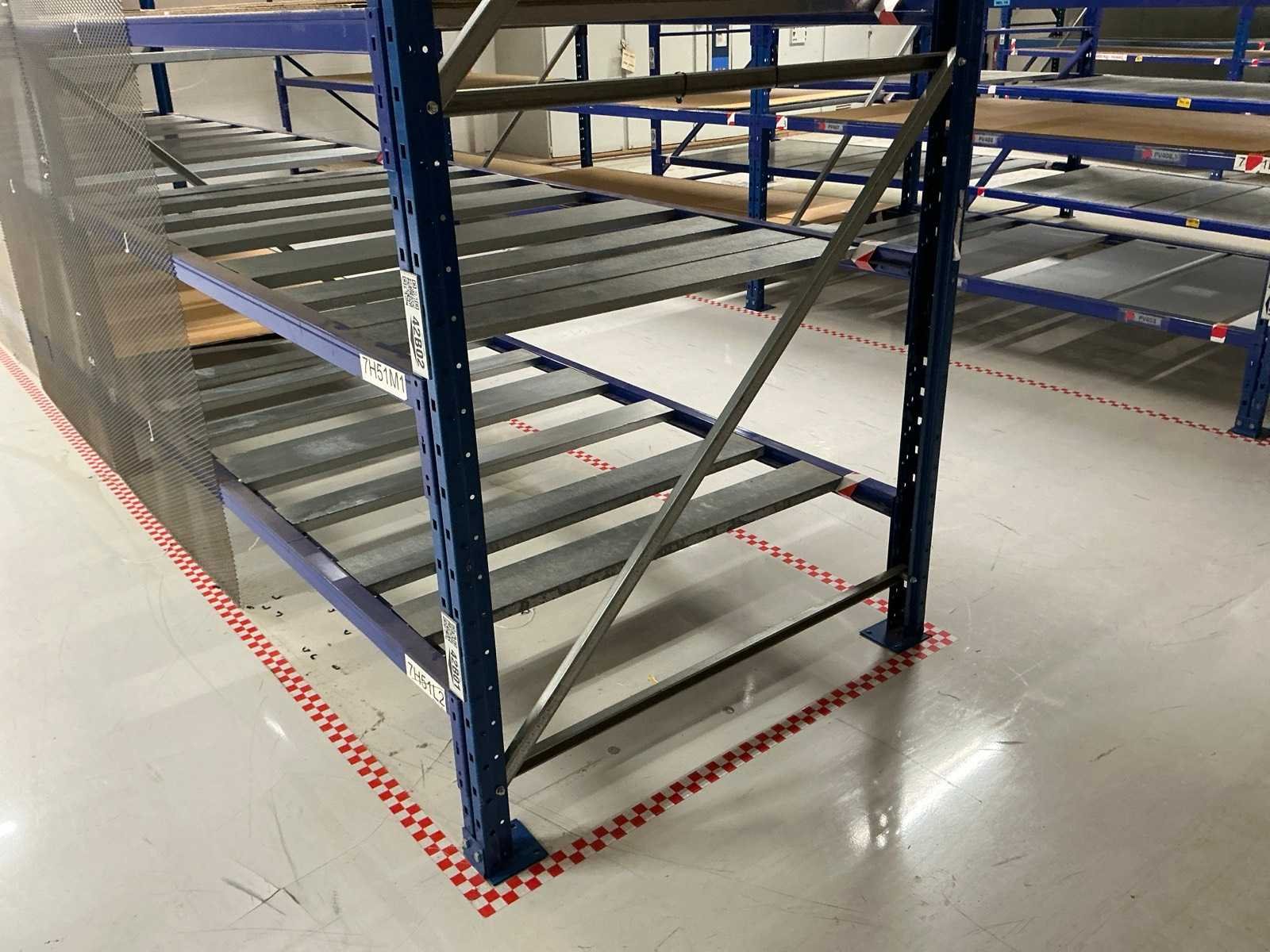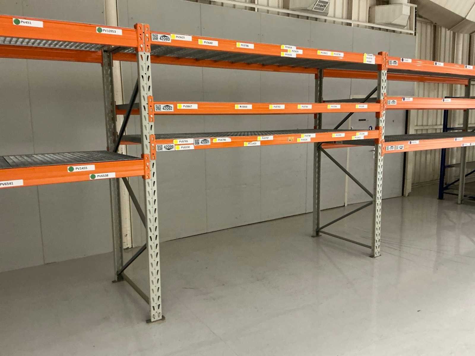 18x ligger oranje 3700mm; 6x ligger oranje 2800mm; 6x staander oranje 2400mm hoog; 12x staander blauw 3000mm hoog; 8x staander blauw 2040mm hoog; 35x ligger blauw 2800mm; 6x ligger blauw 2500mm; diverse legborden en diverse types stellingen; alle stellingen in hal 4-19 No Aantal secties: 19 Sectie diepte: 1300mm Sectie afm. h: 3000mm Aantal staanders: 25 Demontabel: true Materiaal: Staal