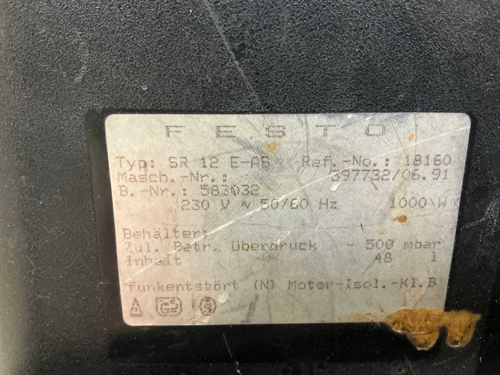 No Merk: FESTO Type: SR 12 E-AS Vermogen: 1000W Stopcontact: true Aansluiting: 230V