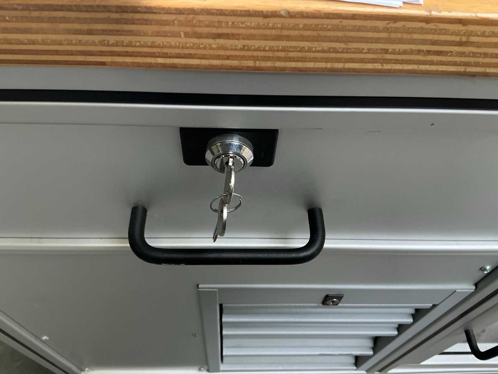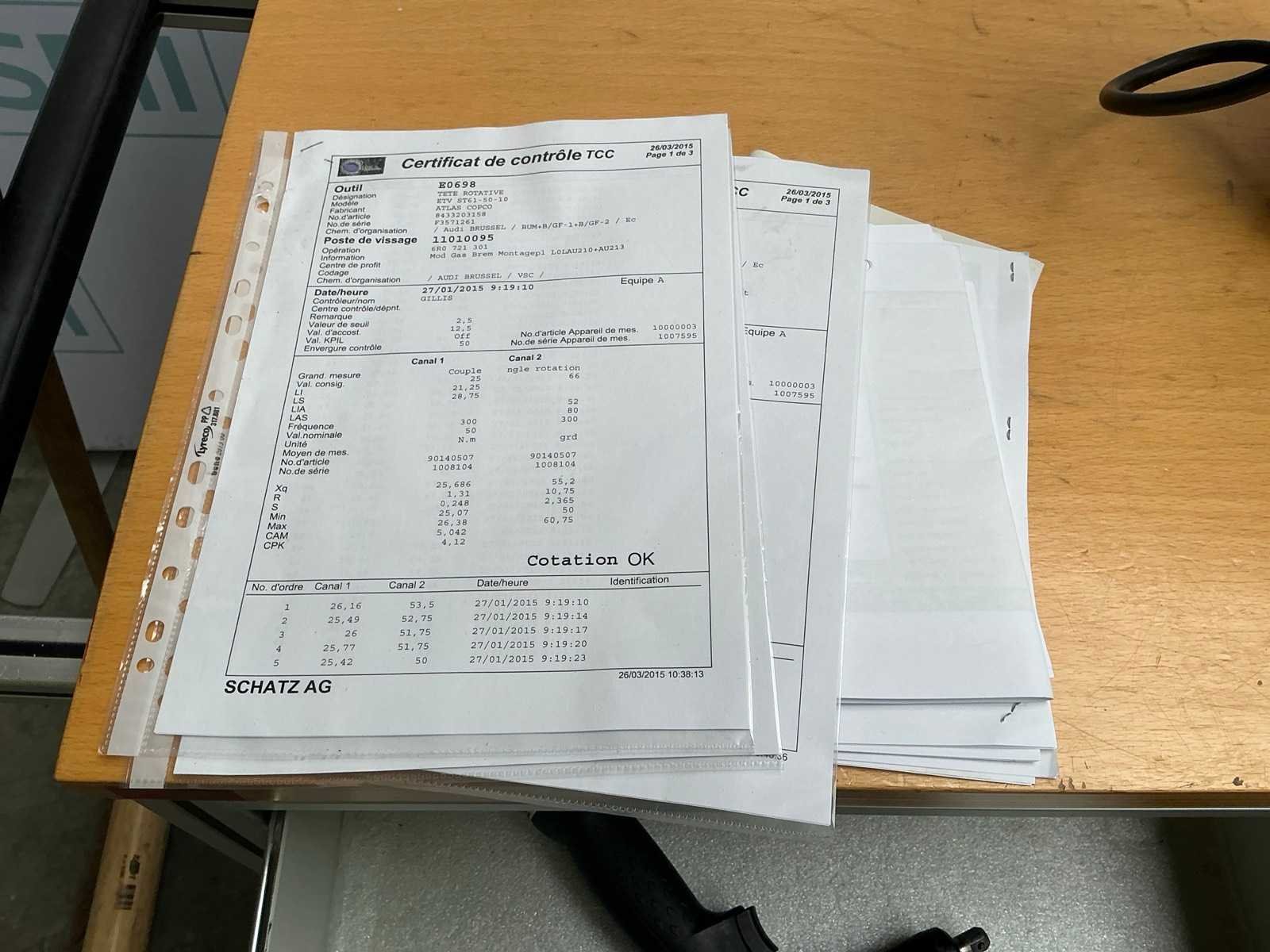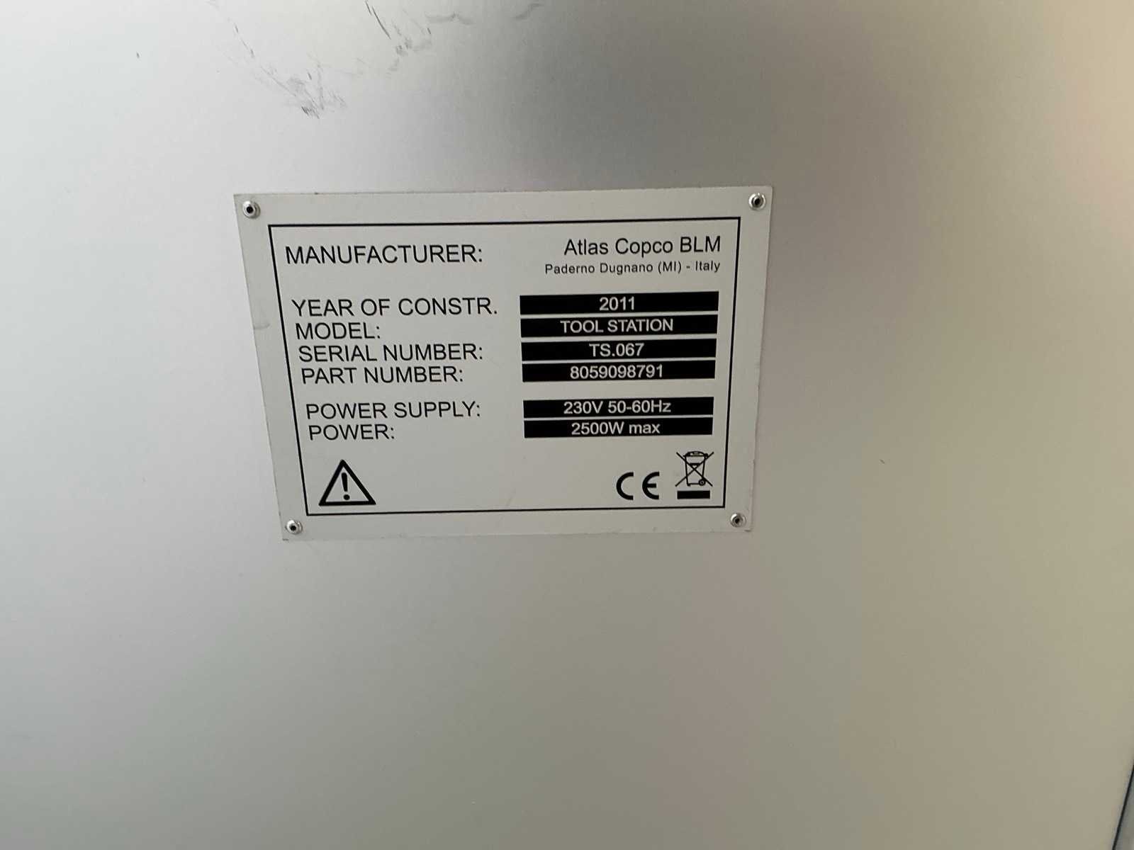 Verrijdbare Power Focus tool station inclusief meerdere Atlas Copco momentschroevendraaiers en Schatz momentsleutels. Inclusief sleutel voor bovenste lade. Geen sleutel voor onderste gesloten lades. Inclusief controller en enkele controle certificaten/documentatie. No Merk: Atlas copco Bouwjaar: 2011 Serienummer: TS.067 Totale afmeting L: 1400mm Totale afmeting Breedte: 560mm Totale afmeting Hoogte: 950mm