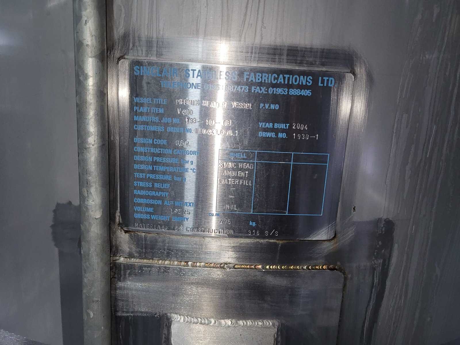 Mengvat, SS316, capaciteit 1320L, spuitbal, poten, diameter 1100 mm No Merk: Sinclair Eigen gewicht: 230kg Rvs: true Totale afmeting Hoogte: 1750mm Bouwjaar: 2004 Type: V401