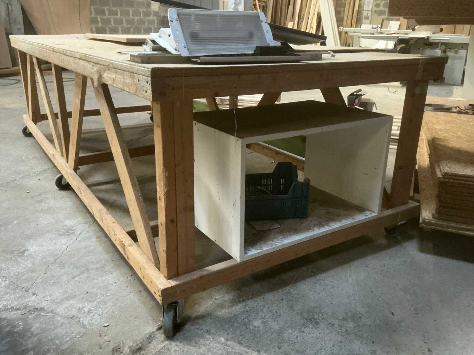 Verrijdbare houten werktafel