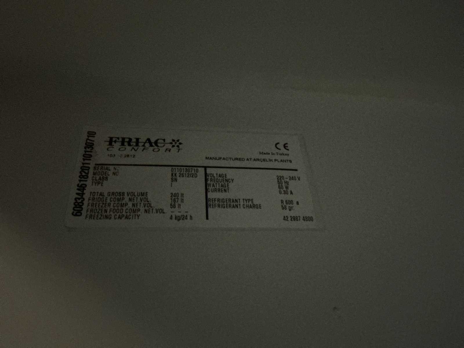 Nee Merk: Friac Model: KK2612/2D Product type: Combi Deur opent naar: Rechts Netto inhoud koelvakken: 167l Netto inhoud Vriesvak: 56l Plaats vriesvak: Bovenaan Vriesvak: Ja Spanning: 230V Kleur: Wit