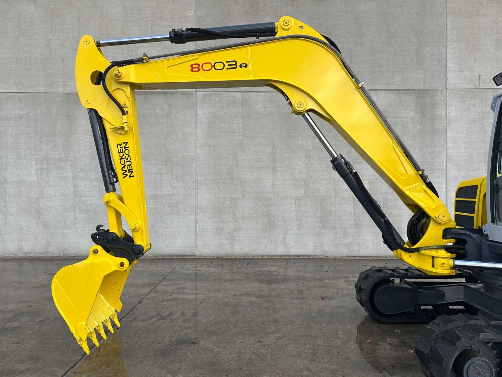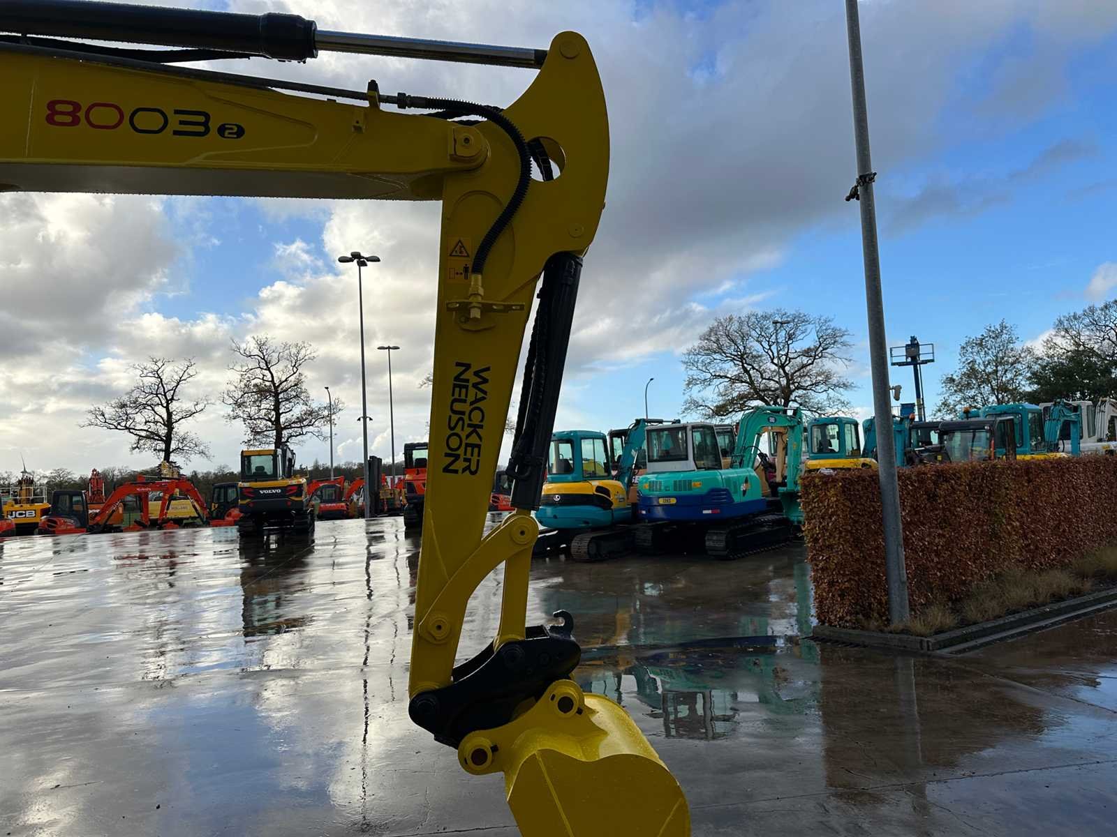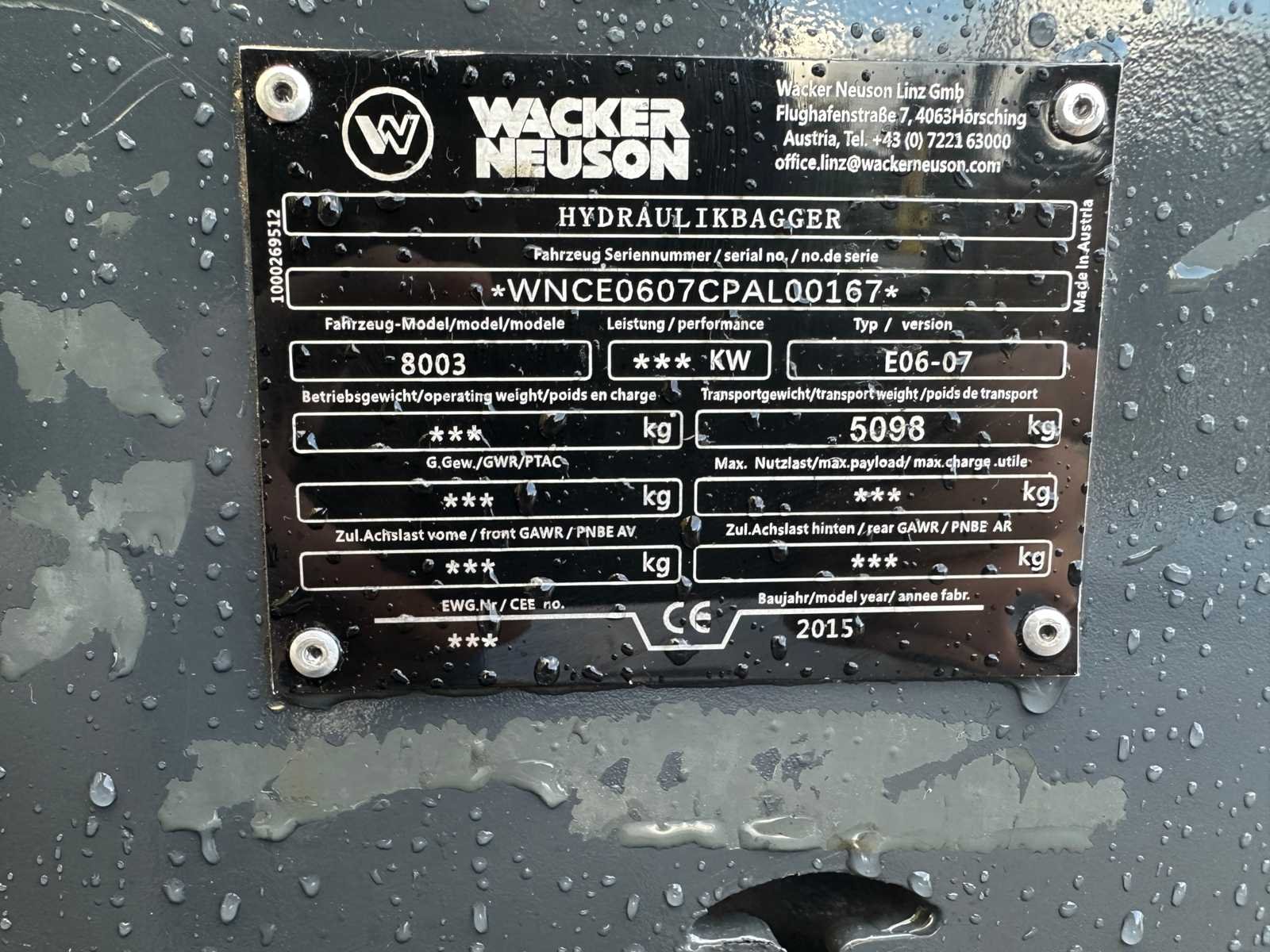 Mechanische snelwissel Tandenbak Hamerleidingen Duwblad Rubber rupsen Geen documenten Nee Merk: Wacker- Neuson Type: 8003 Bouwjaar: 2015 Serienummer: WNCE0607CPAL00167 Merk motor: Yanmar Motorvermogen (kW): 43.4kW Aantal cilinders: 4 Brandstof: Diesel Graafbak afm. b: 700mm Rups breedte: 450mm Afgelezen urenstand: 3477 Eigen gewicht: 5098kg Totale afmeting L: 6500mm Totale afmeting Breedte: 2250mm Totale afmeting Hoogte: 2700mm GS Code: 8429521200