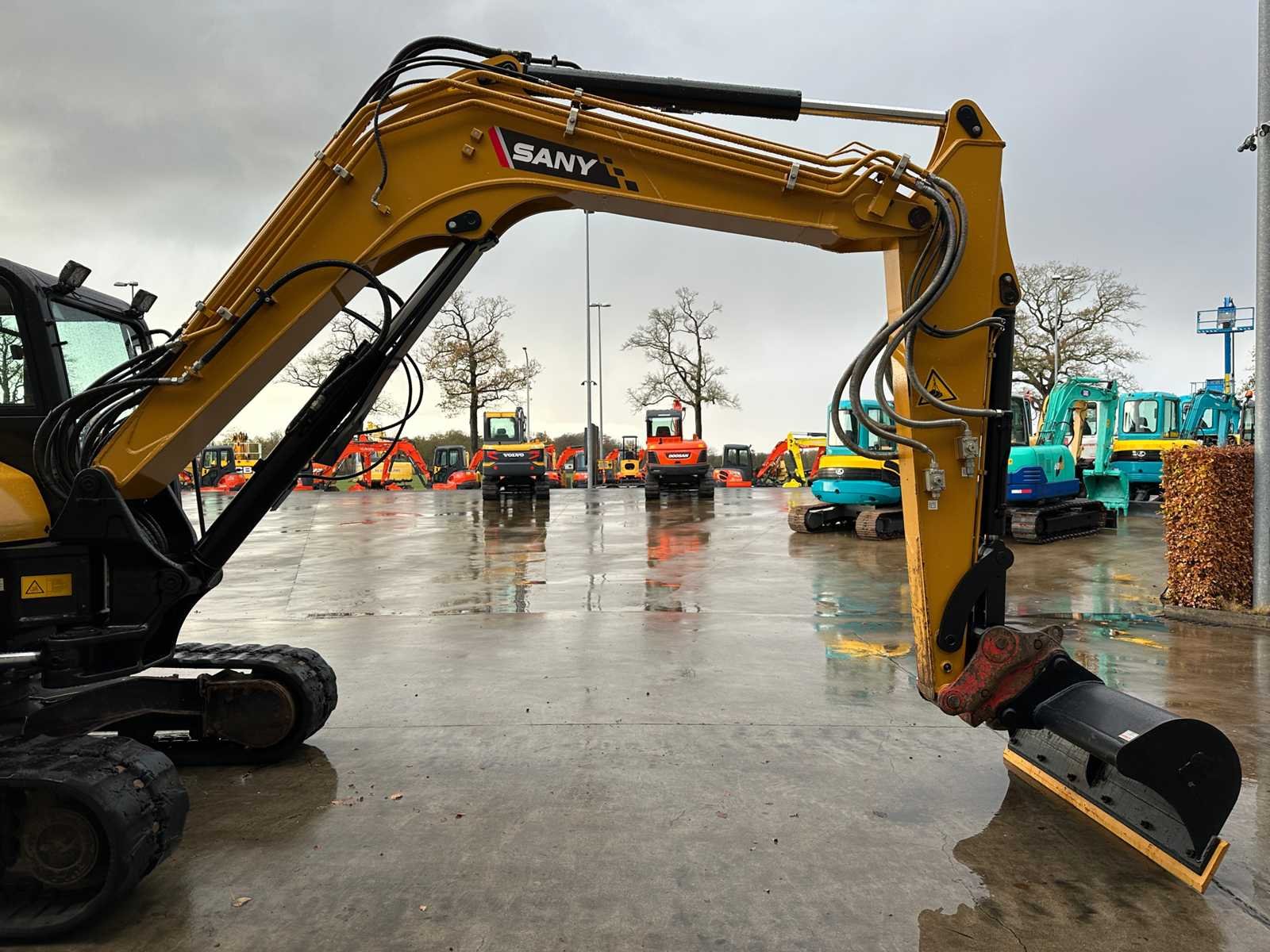 Hydraulische snelwissel Enkel en dubbel werkende functie Rotatie functie Graafbak 150cm Duwblad Geen documenten Nee Merk: Sany Type: SY80U Bouwjaar: 2022 Serienummer: SY008ACB16118 Merk motor: Yanmar Motorvermogen (kW): 53.7kW Aantal cilinders: 4 Brandstof: Diesel Met graafbak: true Graafbak afm. b: 1500mm Rups breedte: 450mm Afgelezen urenstand: 5388 Eigen gewicht: 8800kg Totale afmeting L: 6500mm Totale afmeting Breedte: 2220mm Totale afmeting Hoogte: 2550mm GS Code: 8429521200