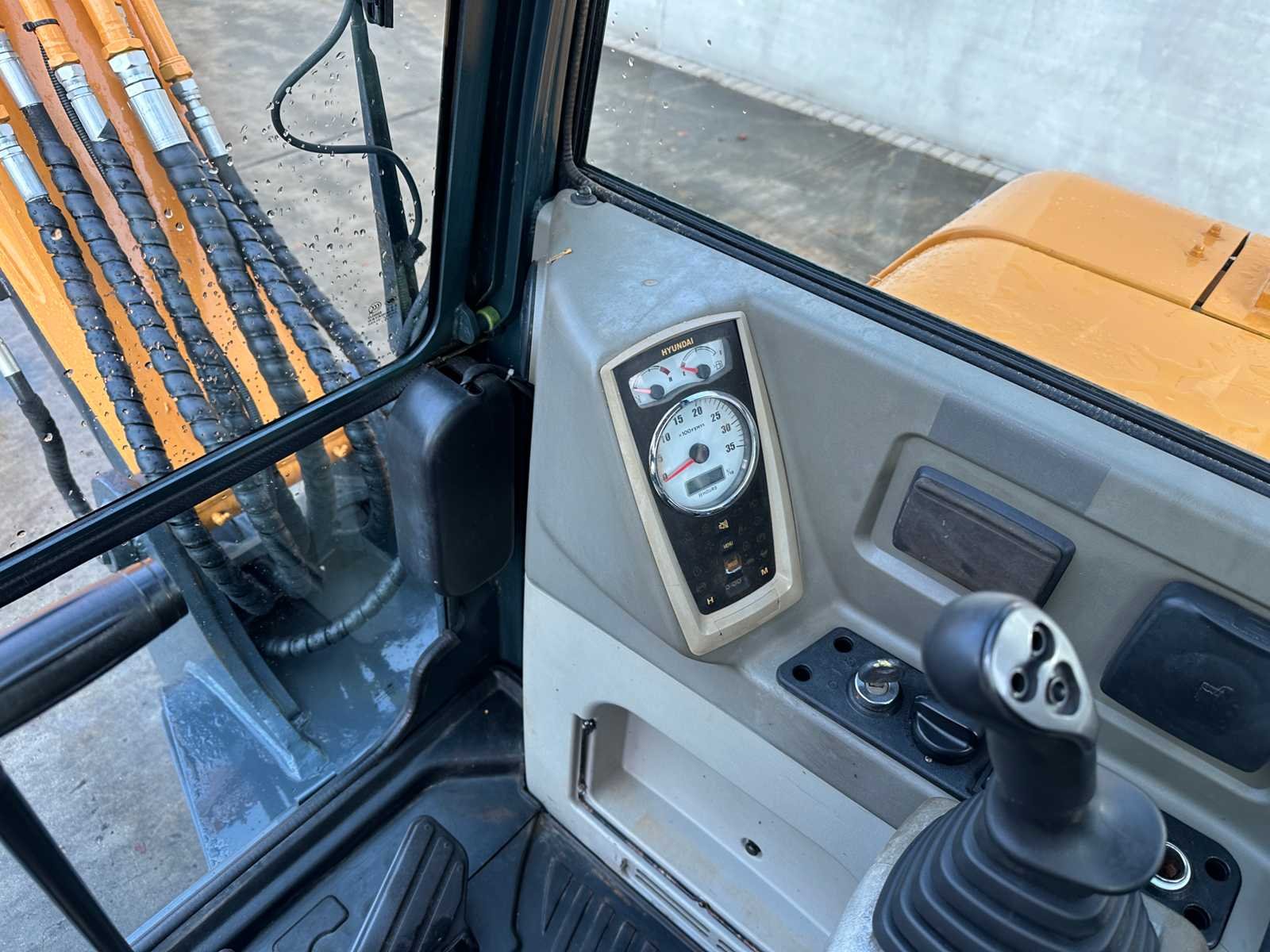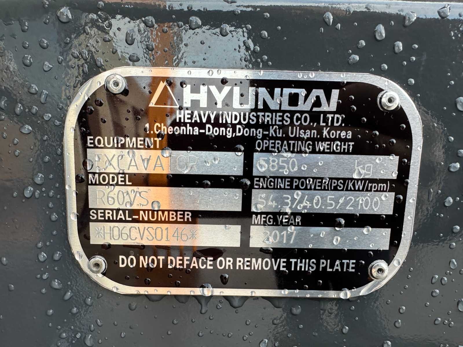 Mechanische snelwissel Hamerleidingen Tandenbak Duwblad Rupsen met rubber pads Geen documenten. Nee Merk: Hyundai Type: R60V Bouwjaar: 2017 Serienummer: H06CVS0146 Merk motor: Yanmar Motorvermogen (kW): 40.5kW Aantal cilinders: 4 Brandstof: Diesel Graafbak afm. b: 650mm Rups breedte: 400mm Afgelezen urenstand: 3395 Eigen gewicht: 5850kg Totale afmeting L: 5900mm Totale afmeting Breedte: 2000mm Totale afmeting Hoogte: 2600mm GS Code: 8429521200