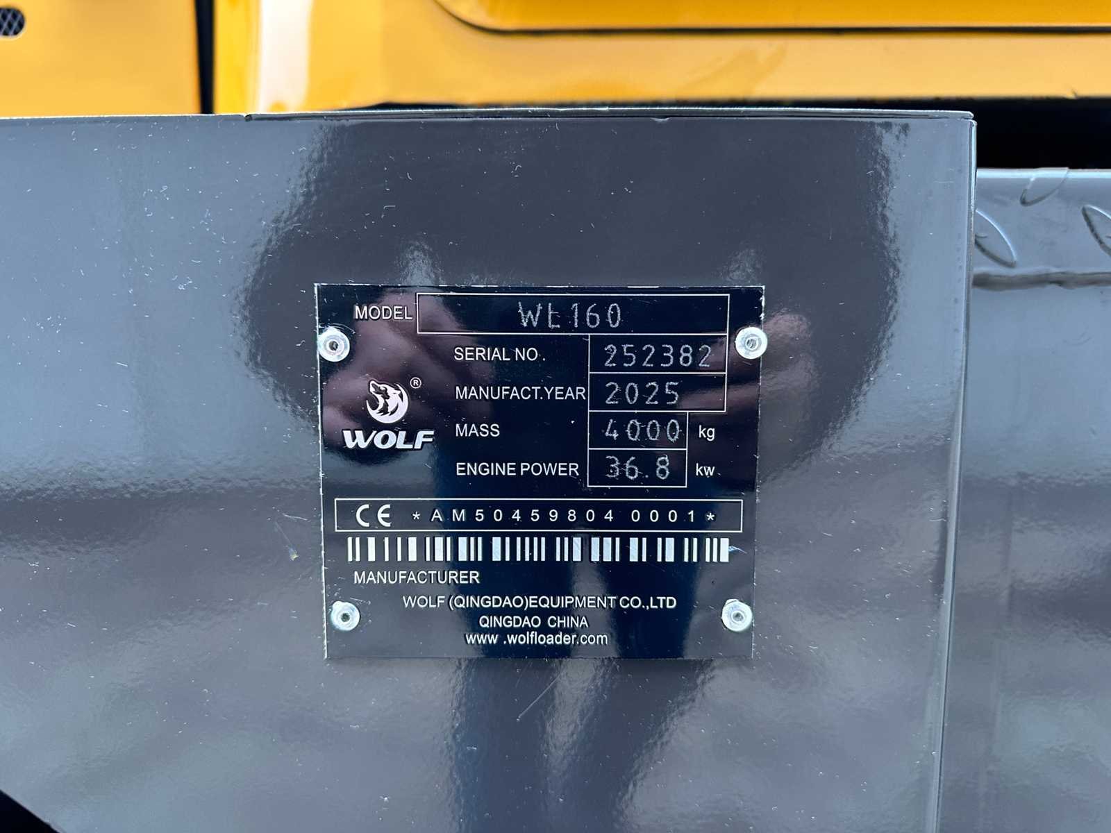 Hydraulische snelwissel Vorkenbord + bak Lepels 1200mm Extra hydraulische functie Achteruitrij camera Gereedschapsbox Nieuw Nee Merk: Wolf Type: WL160 Bouwjaar: 2025 Serienummer: 252382 Merk motor: Xinchai - A498BT1 Motorvermogen (kW): 36.8kW Aantal cilinders: 4 Brandstof: Diesel Graafbak afm. b: 1700mm Bandenmaat: 23,5-16 Afgelezen urenstand: 0 Eigen gewicht: 4000kg Totale afmeting L: 5100mm Totale afmeting Breedte: 1700mm Totale afmeting Hoogte: 2700mm