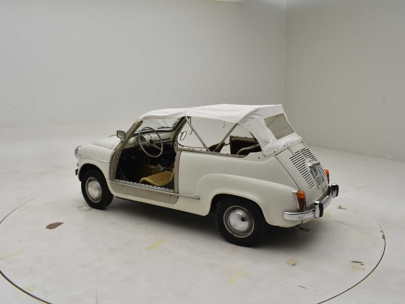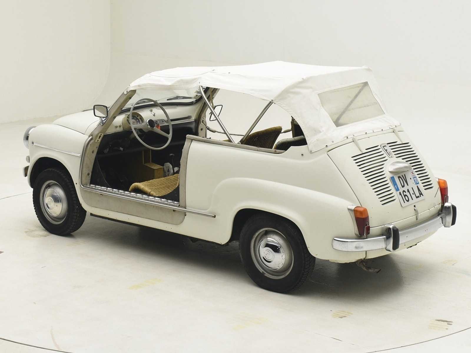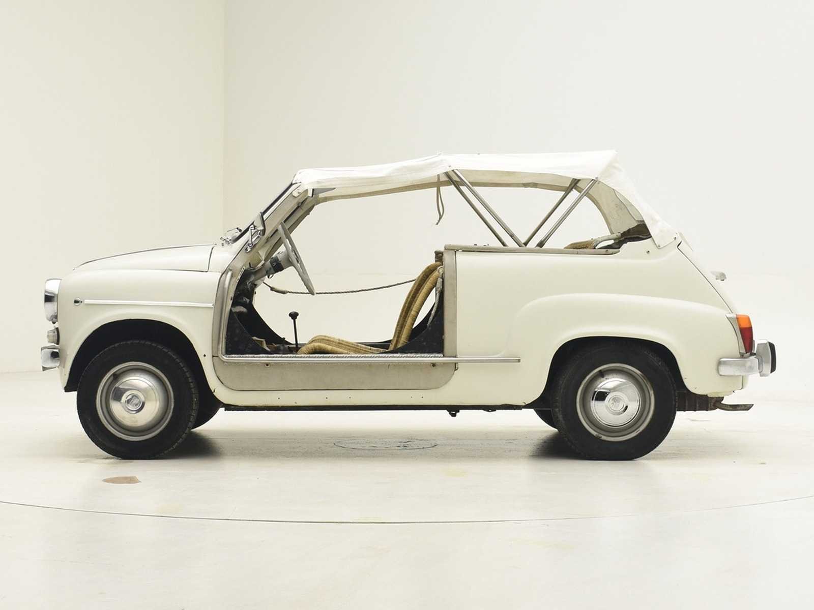 FIAT 100D (600)JOLLY GHAI DE 1961 FRANSE DOCUMENTEN AANWEZIG EXPERTISE VERSLAG AANWEZIG 2008 ***NO RESERVE ZONDER MINIMUMPRIJS*** No Merk: FIAT Type: 600 JOLLY GHAI ***NO RESERVE*** Bouwjaar: 1961 Chassisnummer: 1108566 Afgelezen kilometerstand: 61083 Brandstof: BENZINE Datum eerste inschrijving: 09/10/1961 Boorddocumenten aanwezig?: true Nationaliteit documenten: FRANS Carrosserie: CABRIO Aandrijving: ACHTER Transmissie: MANUEEL Aantal sleutels: 1 Startinformatie: JA Kleur: WIT