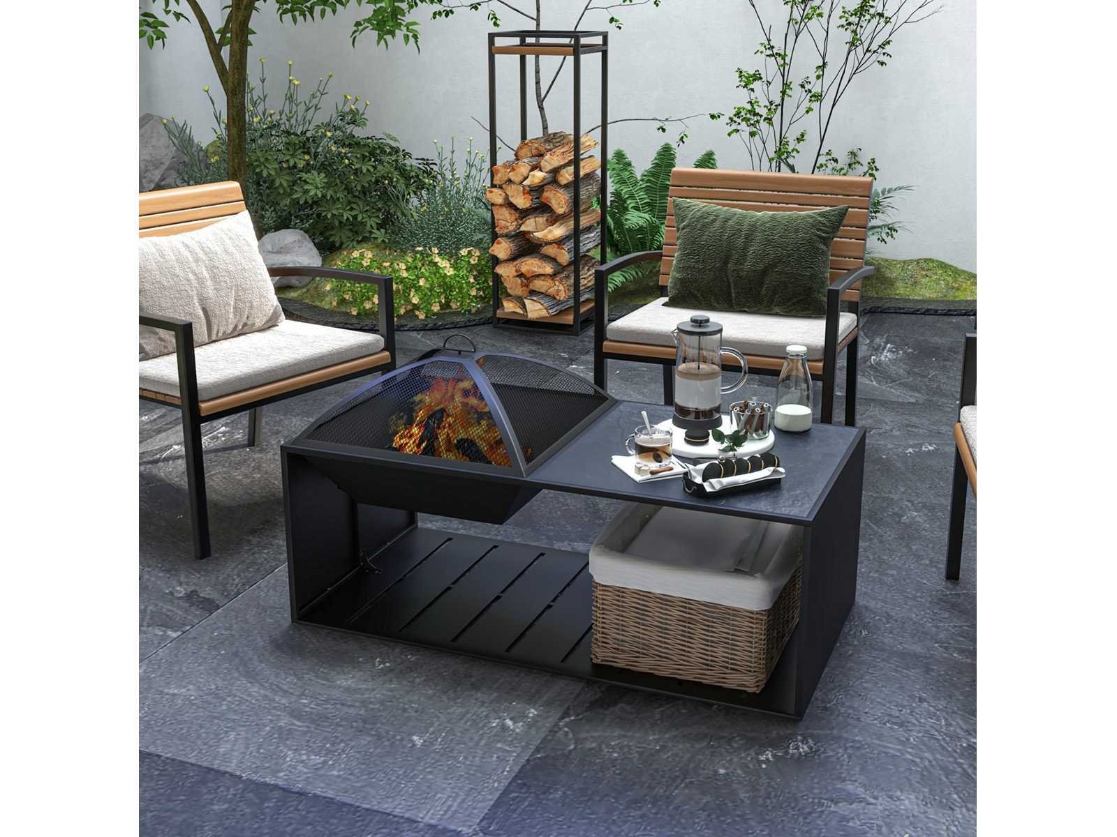 Specificatie: • Kleur: Zwart • Materiaal: keramische tegels, metaal • Totale afmetingen: 39,8"L x 20,1"B x 22"H (101 x 51 x 56 cm) • Afmetingen vuurplaats: 18,5" L x 18,5" B (47 x 47 cm) • Afmetingen van bijzettafel: 18,5" L x 18,5" B (47 x 47 cm) • Dekselafmetingen: 16,5"L x 16,5"B (42 x 42 cm) • Pokerlengte: 19,7" (50 cm) Non
