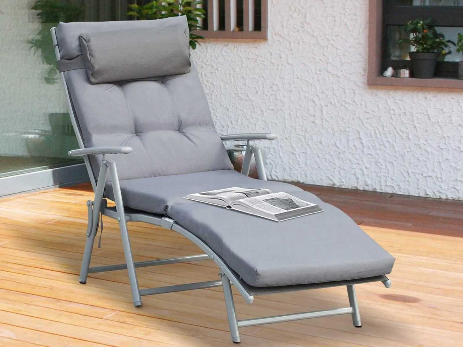 Specificaties: - Kleur: Grijs - Hoofdmaterialen: metaal, textiel, polyesterstof, schuimrubberen vulling - Sun. totale zitpositie: 137L x 63,5B x 100,5H cm - Sun. half-liggende positie: 178L x 63,5B x 70H cm - Sun. opgevouwen: 81,5L x 20,5B x 64,5H cm Non