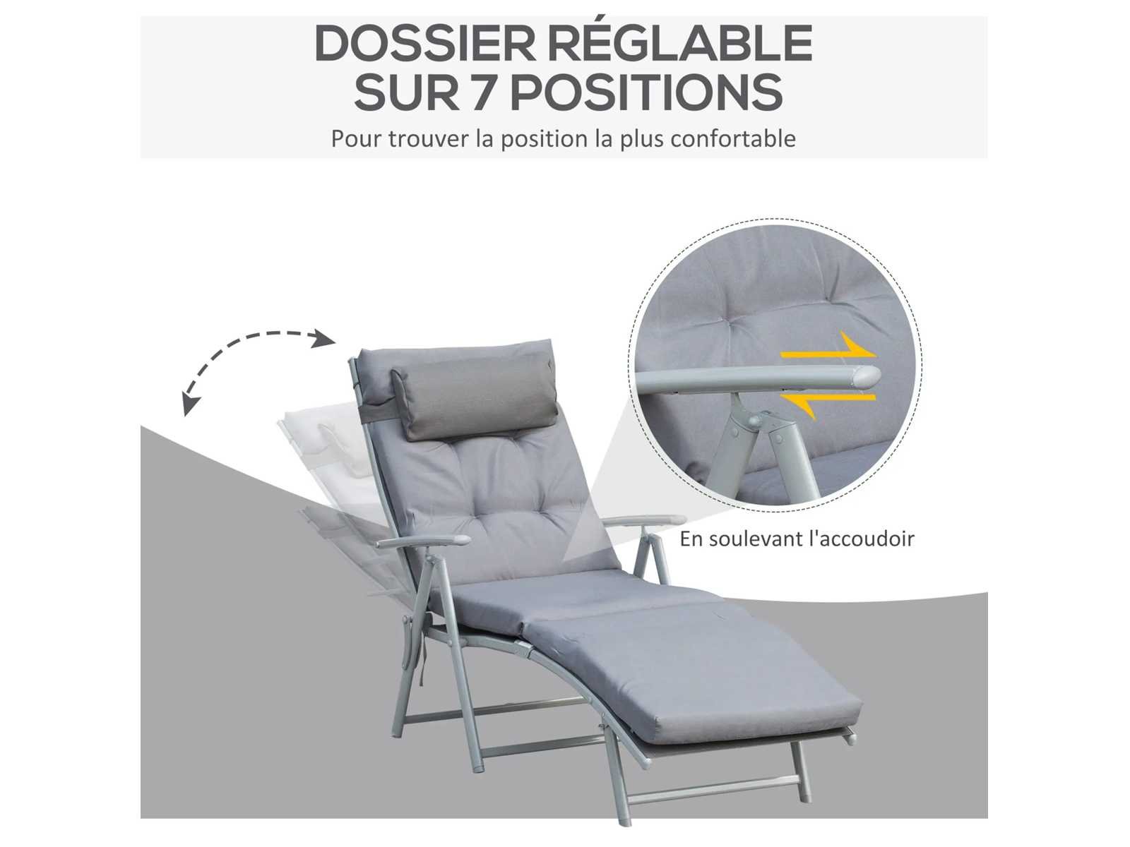 Opvouwbare zonnebank met ligstoel 7 posities chaise longue (x2)
