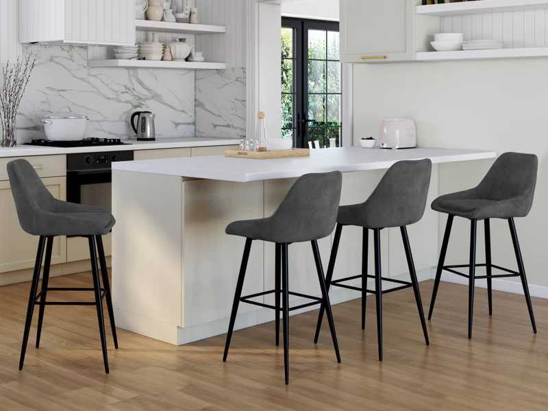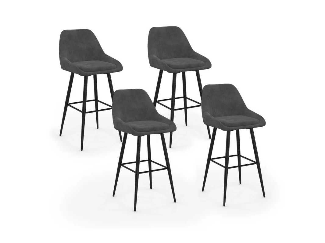 Donkergrijze fluwelen barkrakrukken en metalen poten - set van 4