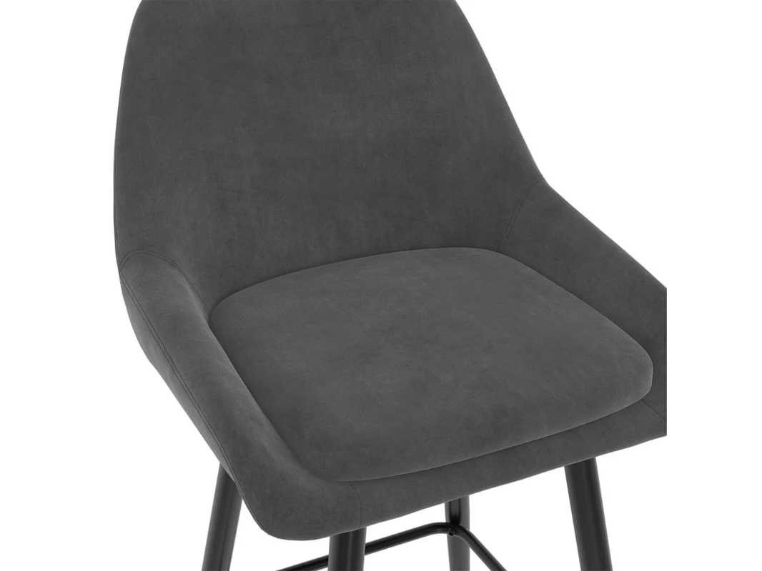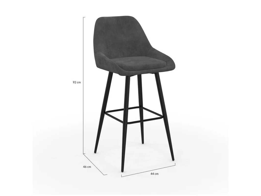 Kenmerken Totale afmetingen: (L) 44 x (W) 46 x (H) 92 cm Materialen: fluwelen bekleding en zwarte metalen voet Kleur: Donkergrijs Zitafmetingen: (L) 44 x (W) 34 x (H) 65 cm Non