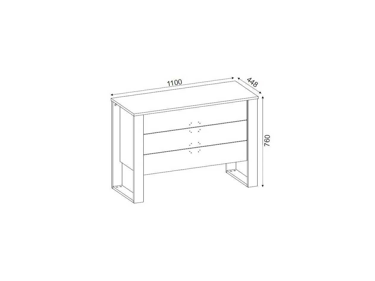 Dit paneel is gecoat met melamine met een dikte van 18 mm. Hij kan aan de muur worden bevestigd. De ladekast bevat 3 lades. De afmetingen zijn 110 cm breed x 76 cm hoog x 44,8 cm diep. Walnoot- en antracietafwerking. Komt in twee verpakkingen. Eén meet 118 cm hoog x 15 cm hoog x 50 cm diep en weegt 24 kg. De andere meet 100 cm breed x 10 cm hoog x 58 cm diep en weegt 16 kg. Non
