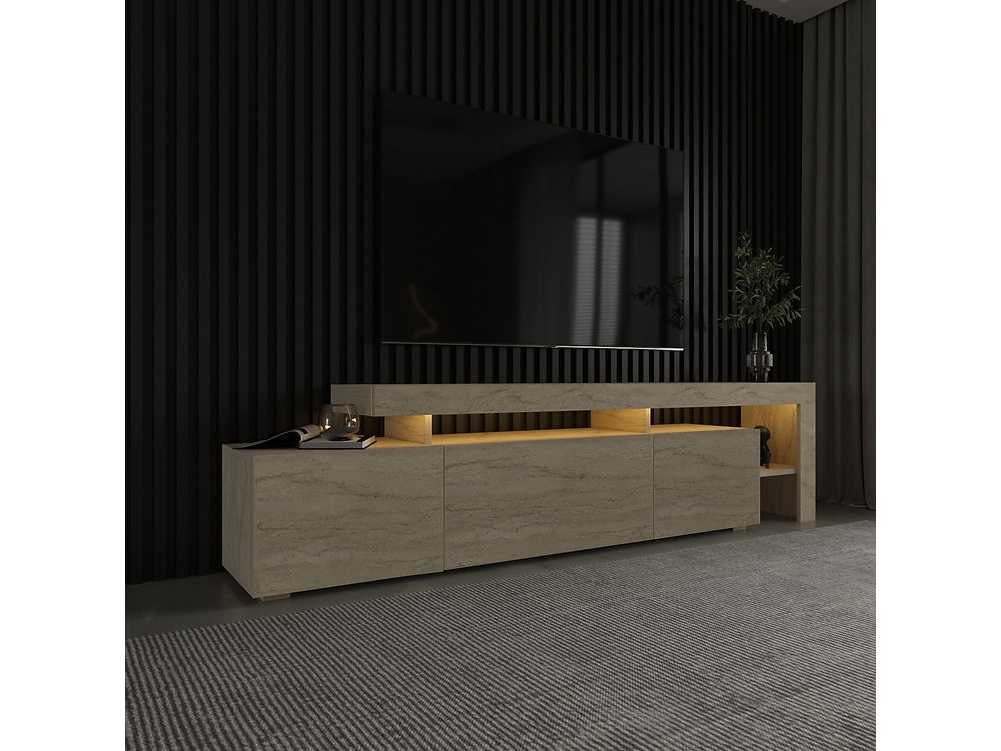 Moderne tv-standaard met led's - travertine-effect