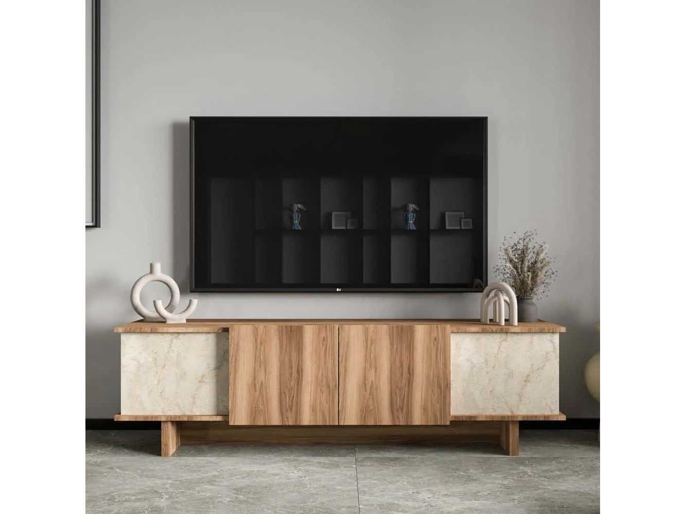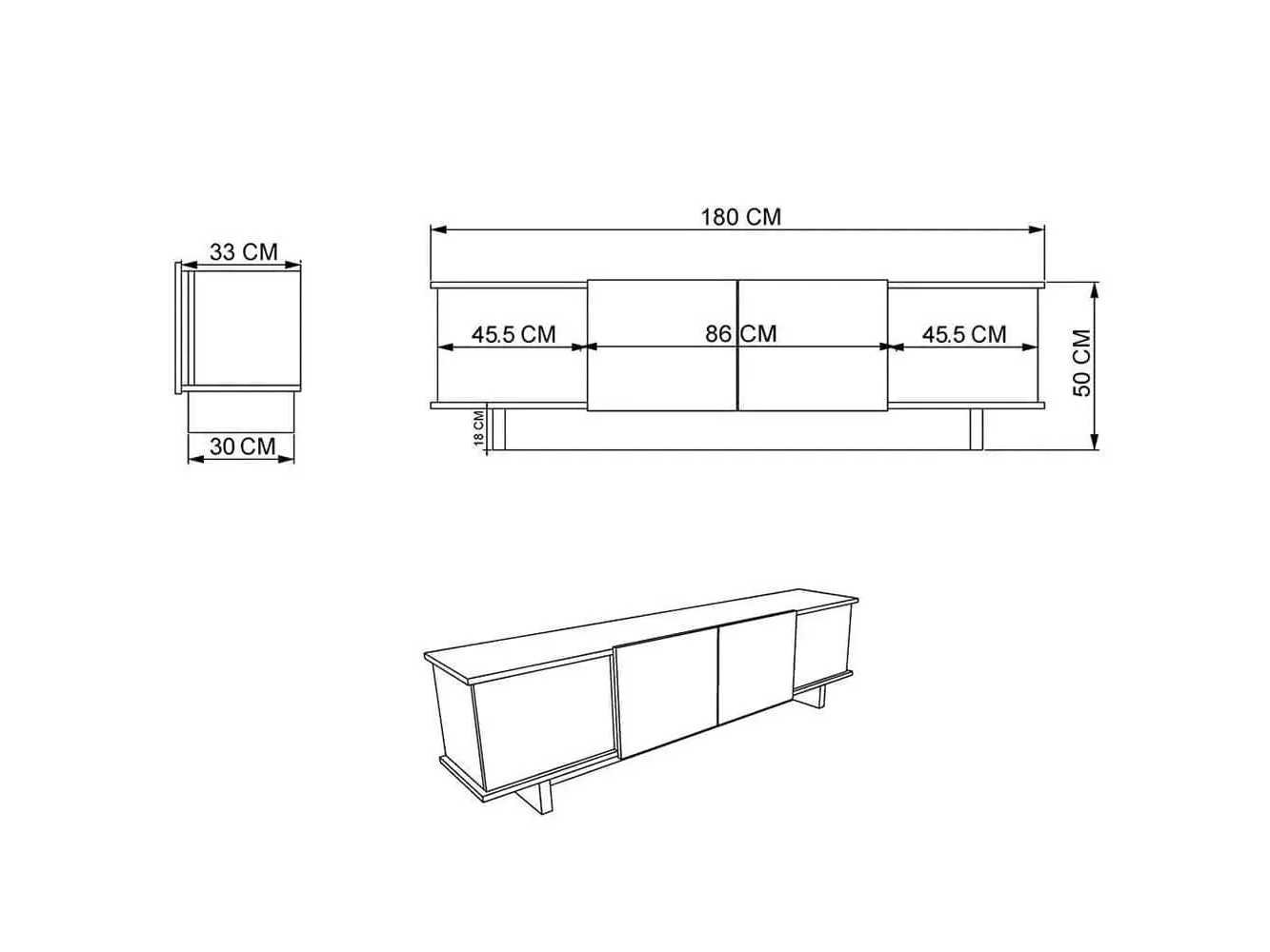 Kwaliteit: Spaanplaat en melamine Afmetingen: 1 TV-meubel: Lengte: 180 cm, Breedte: 33 cm, Hoogte: 50 cm Non