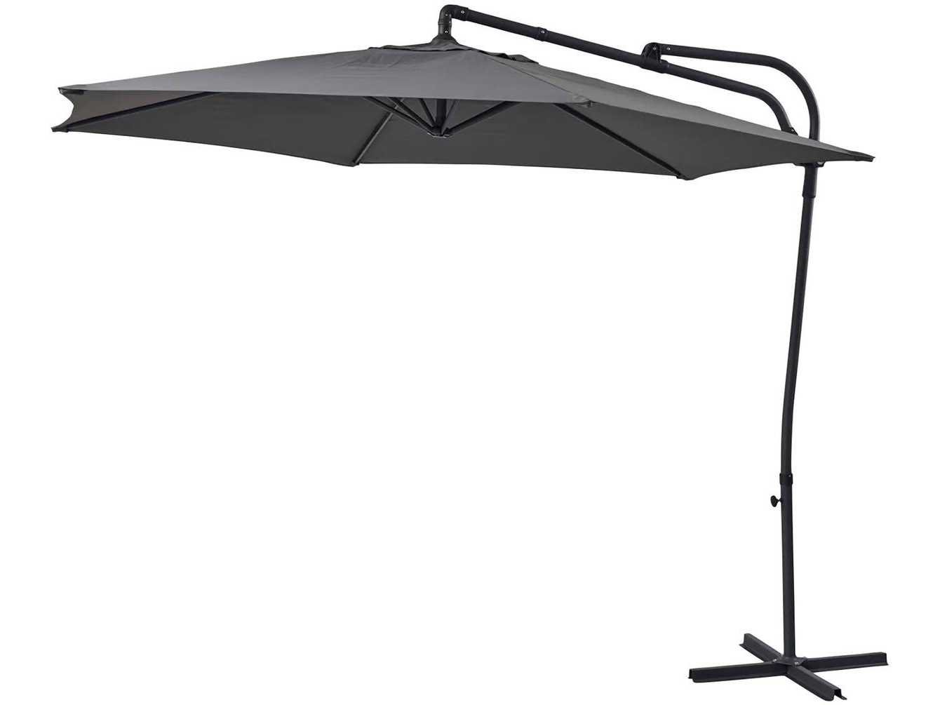 Zwevende parasol met draaibaar handvat en push-up systeem: makkelijk te openen en te kantelen Modern aluminium frame Grijs polyester stof met UV30+ bescherming Non