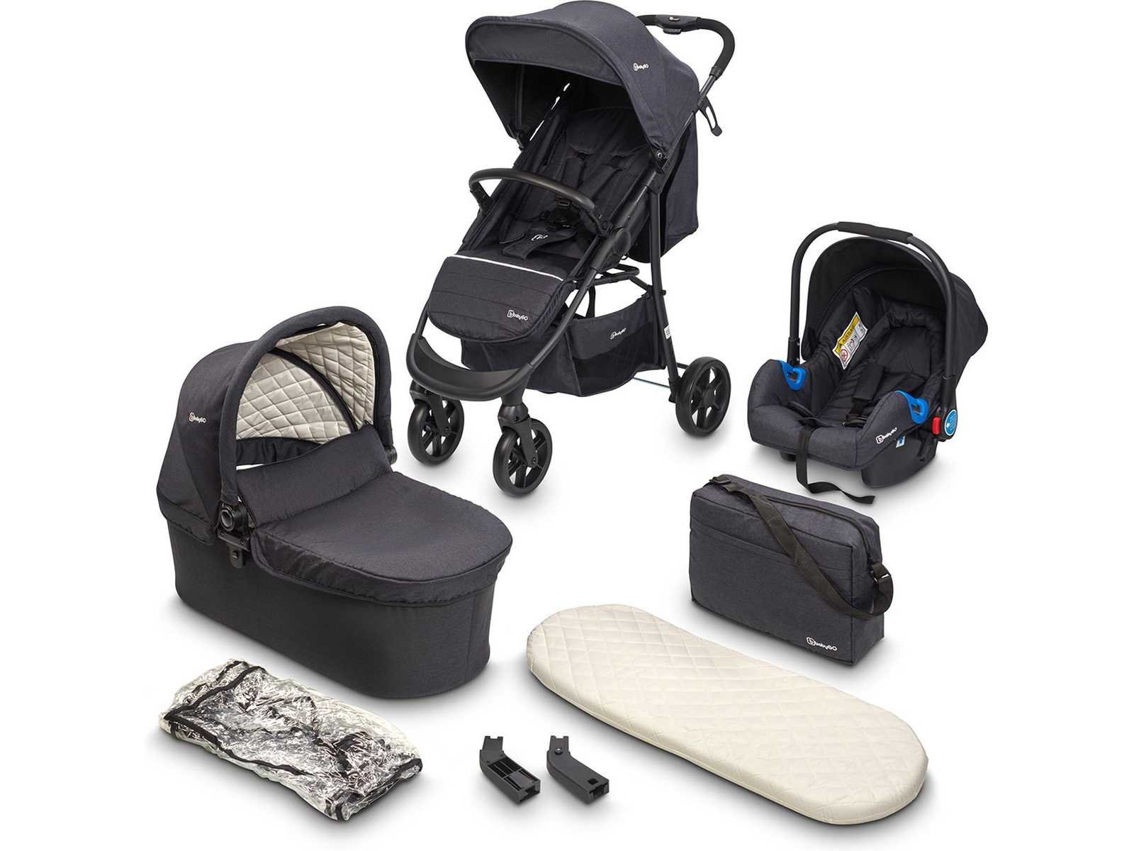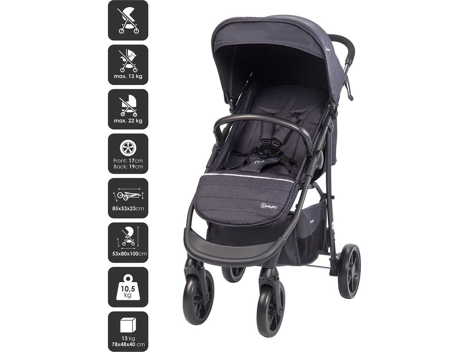 De babyGo Styles 3-in-1 kinderwagen is een trendy 3-in-1 combinatiekinderwagen met praktische voordelen en hoge veiligheidsnormen. De 3-in-1 Styles maakt indruk met zijn veerbanden voor en achter en is gemakkelijk te sturen op elk terrein. 100% polyester Open afmetingen: lengte 94 x breedte 52 x hoogte 105 cm Opgevouwen afmetingen: lengte 87 x breedte 52 x hoogte 26 cm Handvathoogte: 103 cm Zitoppervlak: lengte 22 x breedte 35 cm Rugleuning: breedte 47 x hoogte 30 cm Diameter van voor/achterwielen: 18/20 cm Gewicht: 10 kg Maximale belasting: 15 kg Non
