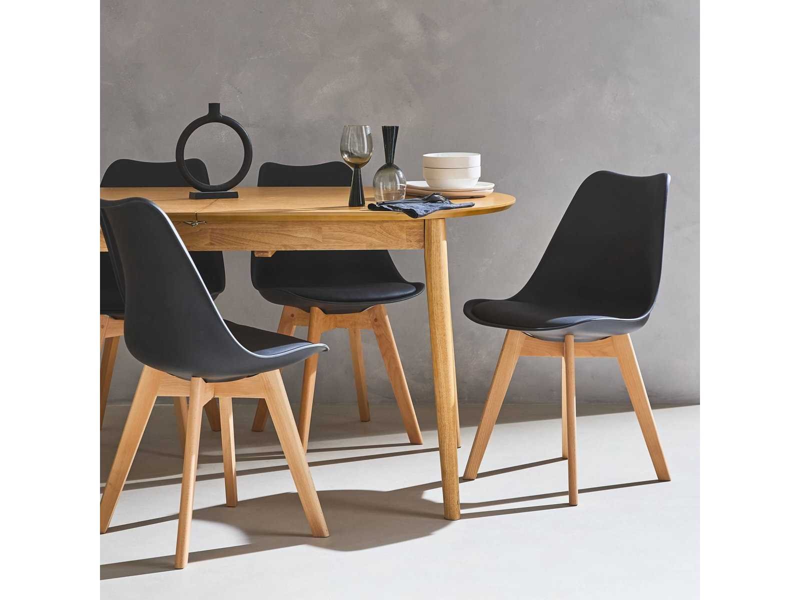 Zitmateriaal: polypropyleen Poten: Beukenhout Kussenvulling: 100% polyester en acrylstof (120gr/m²) Kussenvulling: schuim (1,8 cm dik) Stoelafmetingen: Voetengewicht: 4,3 kg (per stoel) Zitafmetingen: L47xD43cm Zithoogte: 42cm rugleuningafmetingen: W27xH39cm Kussenafmetingen: W45 x D38cm Maximaal ondersteund gewicht: 110kg Non
