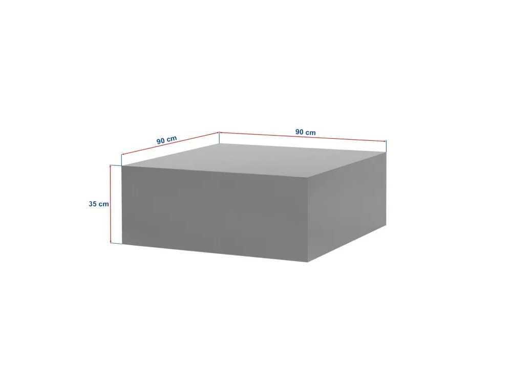Onzichtbare wielen Samenstelling: MDF-hout bedekt met melamine (afwerking: decoratie volgens model). Afmetingen: Lengte: 90 cm. Breedte: 90 cm. Hoogte: 35 cm. Gewicht: 37 kg. Non