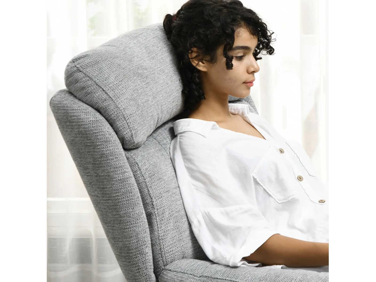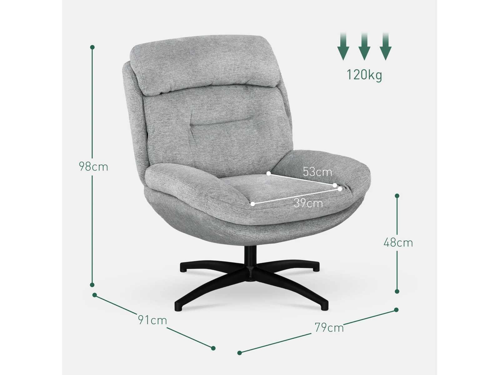 Specificatie: Kleur: Grijs Materialen: Chenille (100% polyester), schuim, staal Totale afmetingen: 79 cm (breedte) x 91 cm (diepte) x 98 cm (hoogte) Zitafmetingen: 39 cm (breedte) x 53 cm (diepte) x 48 cm (hoogte) Achterafmetingen: 63 cm (breedte) x 75 cm (diepte) Armleuningafmetingen: 61 cm (breedte) x 20 cm (diepte) Dikte: 13 cm (zit), 20 cm (rugleuning) Laadvermogen: 120 kg Non
