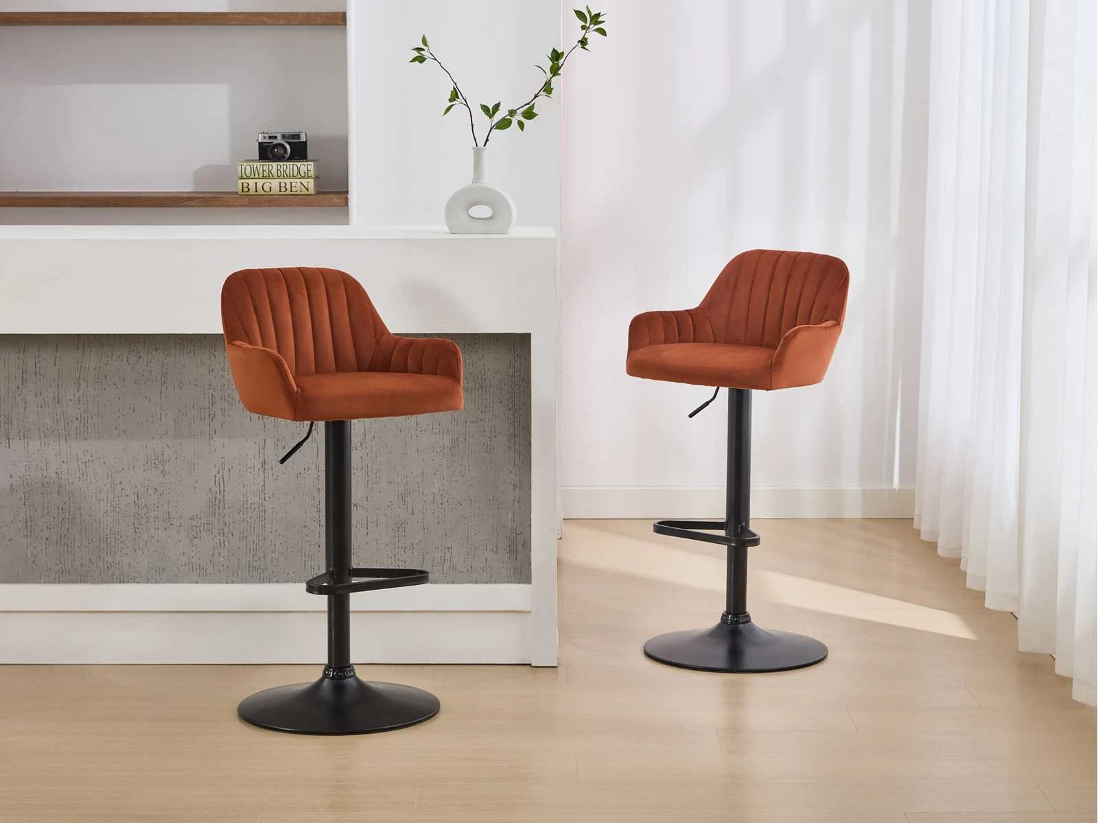 Kenmerken Kleur (tint): Terracotta Materiaal (precisie): 100% polyester, fluweel Materiaal (Basis): Metaal Structuur: Multiplex, metaal Opties: Draaipunt, voetsteun, verstelbare hoogte Zitbekleding: Polyurethaanschuim Zitdichtheid: 22 kg/m³ Achterleuningbekleding: Polyurethaanschuim Rugsteundichtheid: 24 kg/m³ Met armleuningen Gebruik: Interieur Bereik: À la carte, Espace pro Maximale belasting ondersteund: 120 kg Verzamel jezelf Rotatiesysteem: 360° Afmetingen Lengte: 47 cm Lengte: 106 cm, 85 cm Diepte: 49 cm Zithoogte: 66,5 cm, 87 cm Zitdiepte: 37 cm Rugsteunhoogte: 35 cm Non