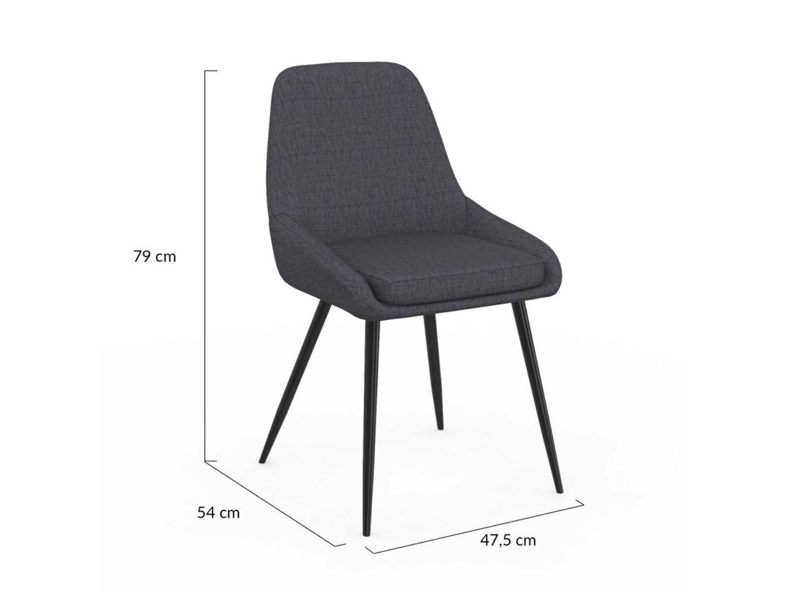 Totale afmetingen: (L) 47,5 x (B) 54 x (H) 79 cm Materiaal: Stoffen zitting en metalen poten Zitafmetingen: (L) 47,5 x (W) 39 x (H) 49 cm Kussendikte: 5 cm Rugsteunhoogte: 35,5 cm Non