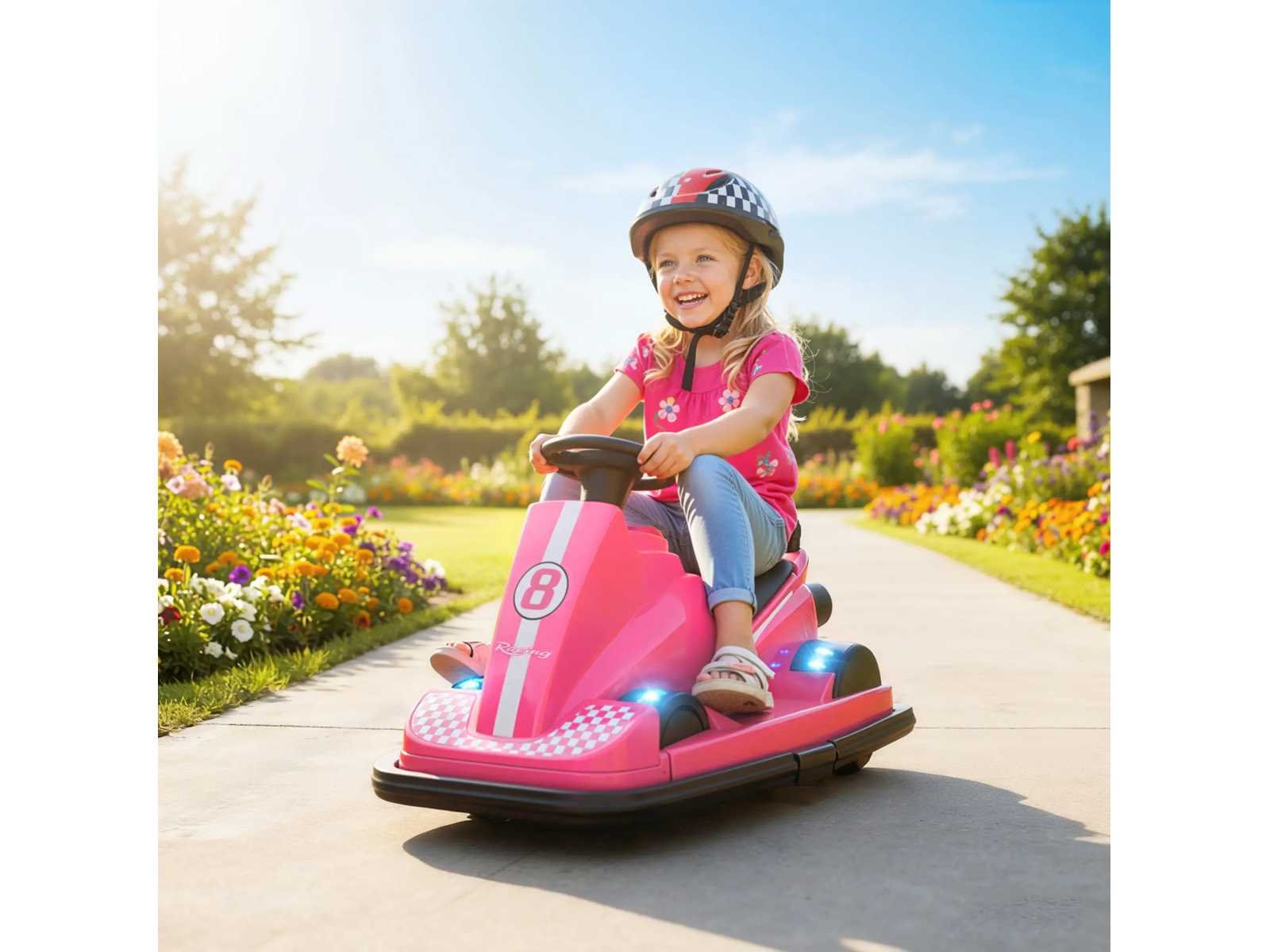 Technische gegevens: ? Kleur: Roze ? Materialen: Metaal, plastic ? Totale afmetingen: 74 cm (L) x 53 cm (B) x 48 cm (H) ? Zitafmetingen: 30 cm (L) x 25 cm (W) ? Zithoogte: 32 cm ? Wielafmetingen: Ø15 x 5,5 cm, Ø4 x 3,5 cm ? Batterij: 6 V 4,5 Ah ? Motoren: 2 x 6 V ? Snelheidsbereik: 2,5 km/u ? Aanbevolen leeftijd: 3-8 jaar ? Maximale belasting: 30 kg Non