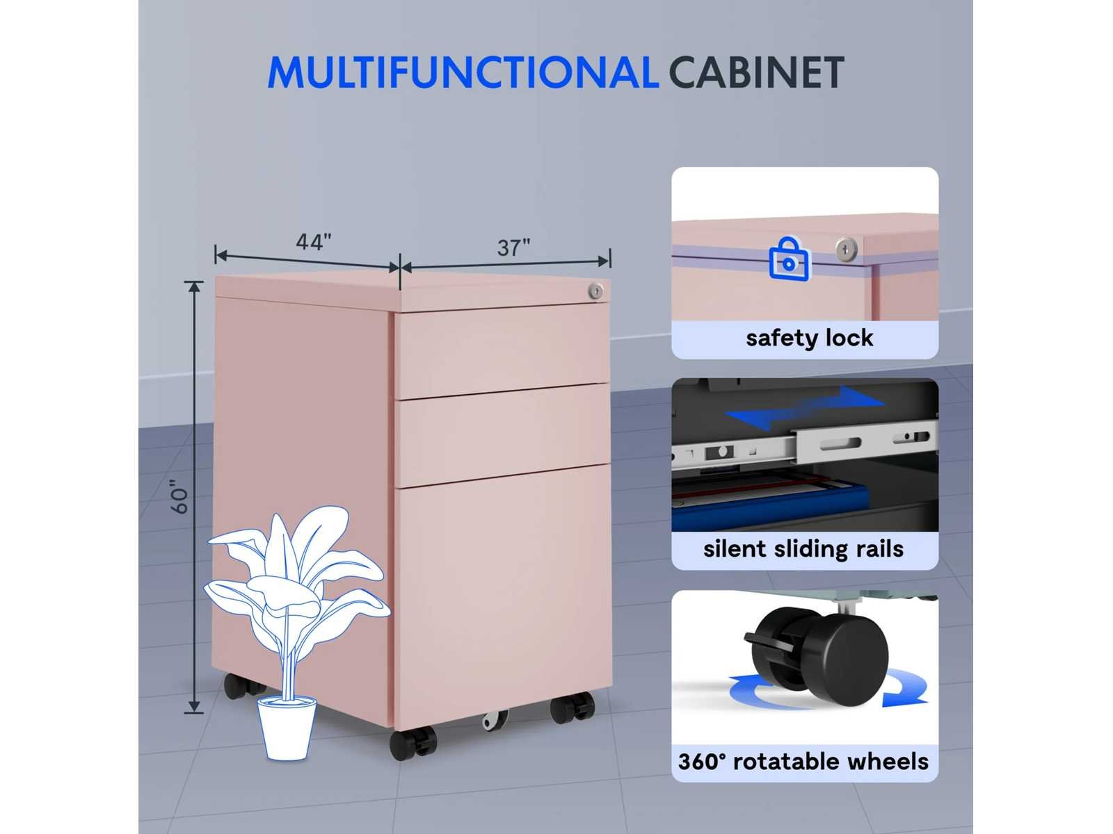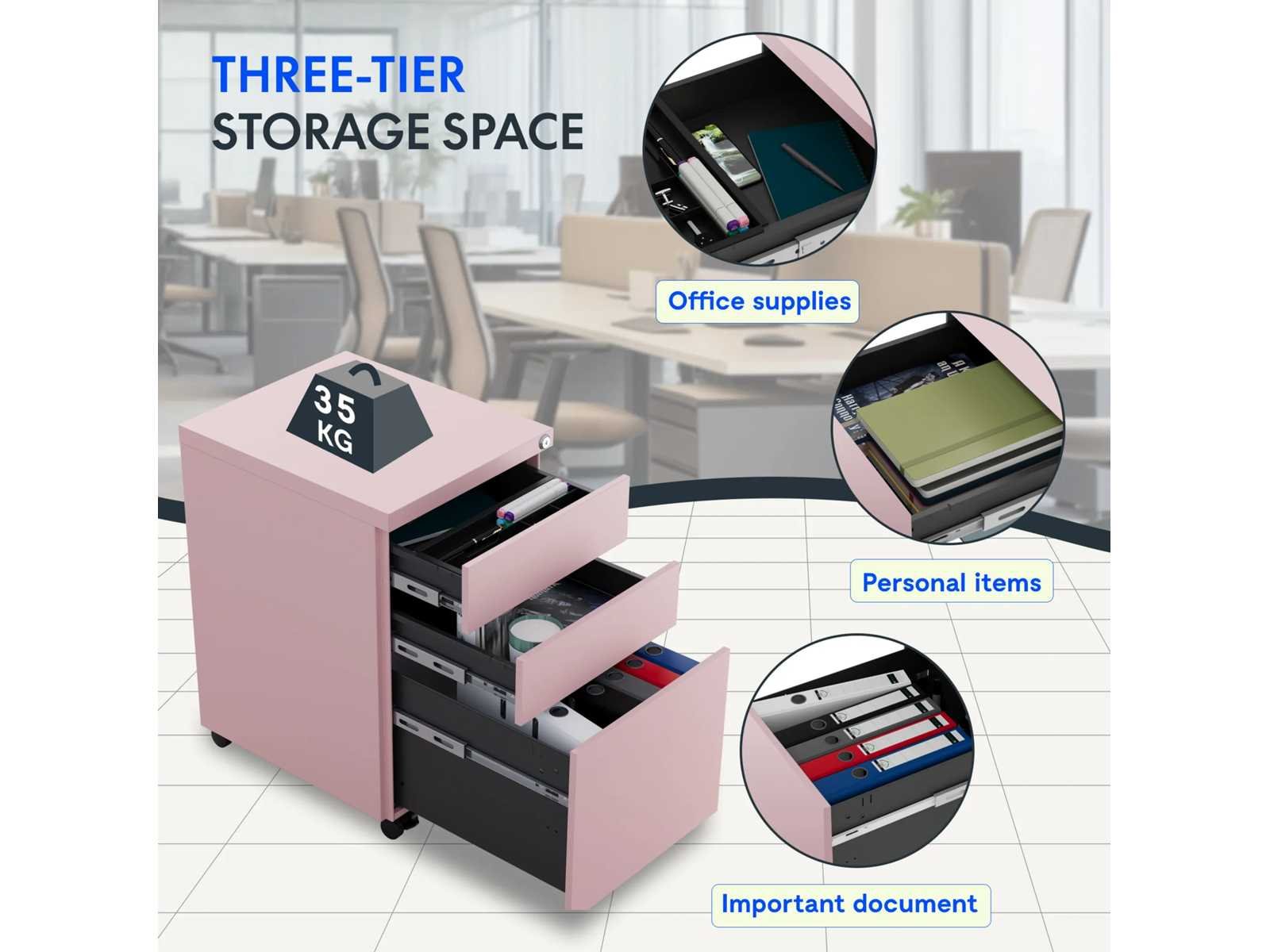 S BEVEILIGING MET SLUITING: De bovenste lade is uitgerust met een cilinderslot - bescherm effectief uw belangrijke documenten, persoonlijke bezittingen of vertrouwelijke gegevens. De onderste lade, met een hoogte van 31 cm, is ideaal voor grotere documenten en objecten. STILLE EN STABIELE CIRCULATIE: Dankzij metalen rails gemonteerd op kogellagers schuiven de lades stil en soepel - perfect voor een werkomgeving die concentratie bevordert, zonder vervelende geluiden. VEELZIJDIG - IN ELKE KAMER: Of het nu op kantoor, woonkamer of slaapkamer is, het voetstuk op wielen past in elke omgeving - ideaal als archiefkast, printerkast of nachtkastje met extra opbergruimte. STABIELE LAGER MET ANTI-BUCKLE FUNCTIE: Uitgerust met afsluitbare 360° draaiwielen en een anti-kantelwiel voor extra veiligheid - voorkomt kantelen wanneer de lades volledig open zijn. Non
