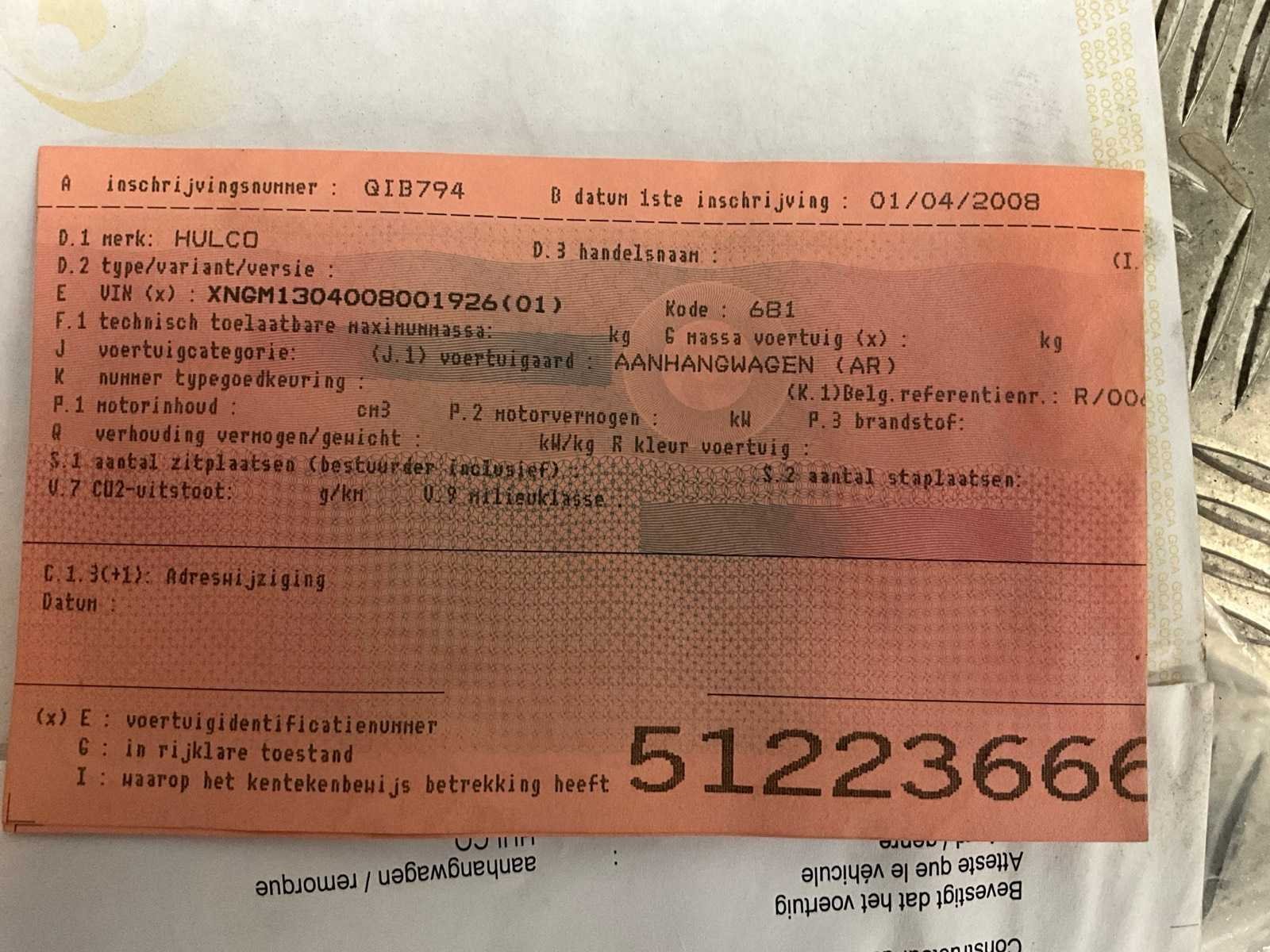 2008 hulco m1 aanhangwagen