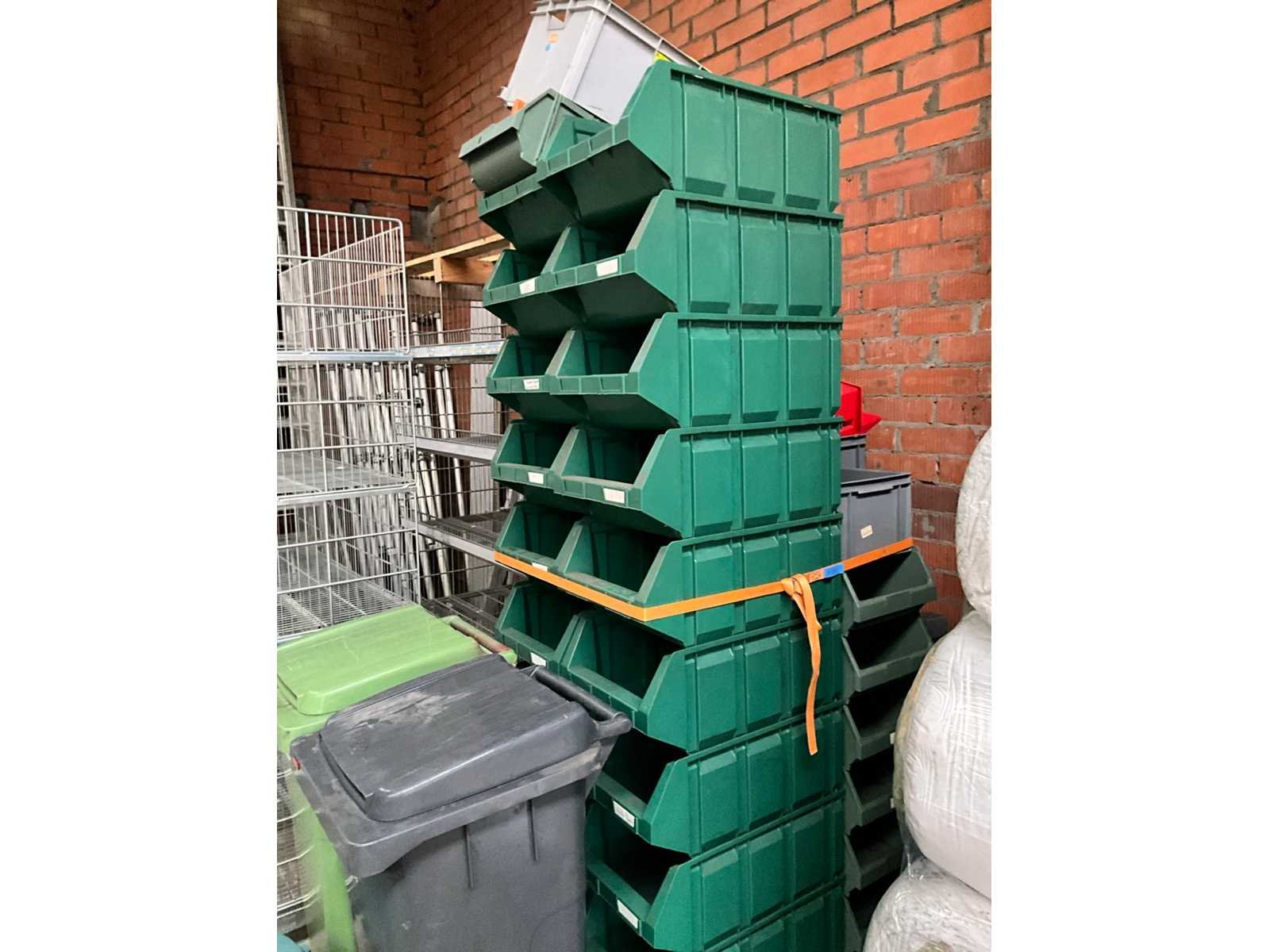 Waaronder 10x metalen stapelbak 130x106cm, 3x afvalbak, ca. 40x diverse opberg en sorteerbakken Nee