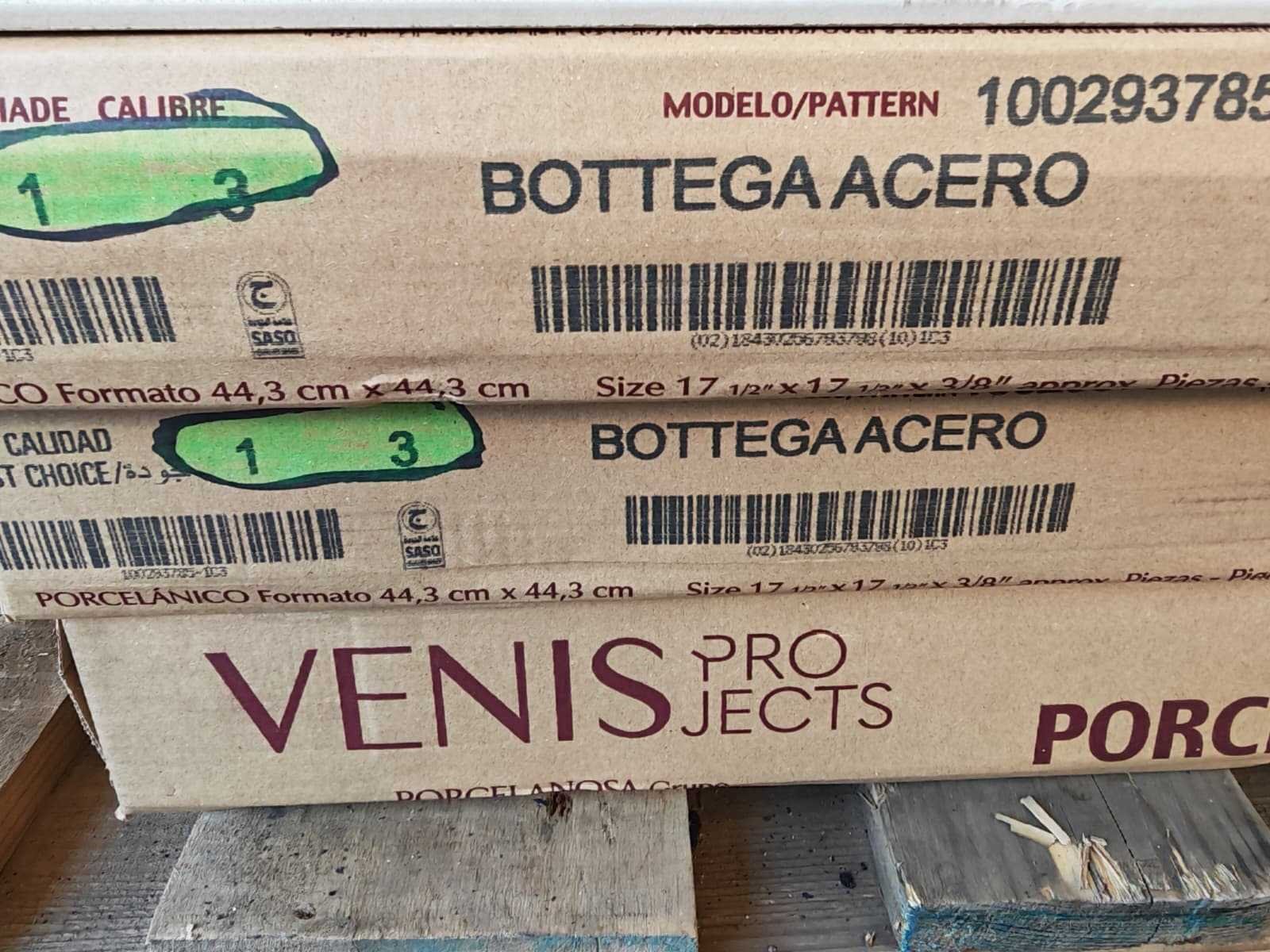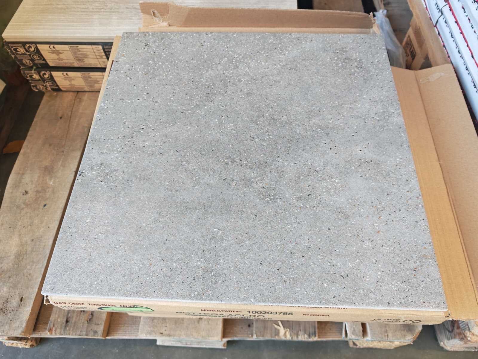 Nee Merk: Porcelanosa Kleur: Acero Afwerking: Mat Lengte: 443mm Breedte: 443mm Dikte: 9mm Materiaal: Keramiek Type: Vloertegel Model: Bottega Aantal m² per verpakking: 0,98m² Aantal pakken: 4 Totaal oppervlakte: 4,12m² Totaal gewicht: 90kg