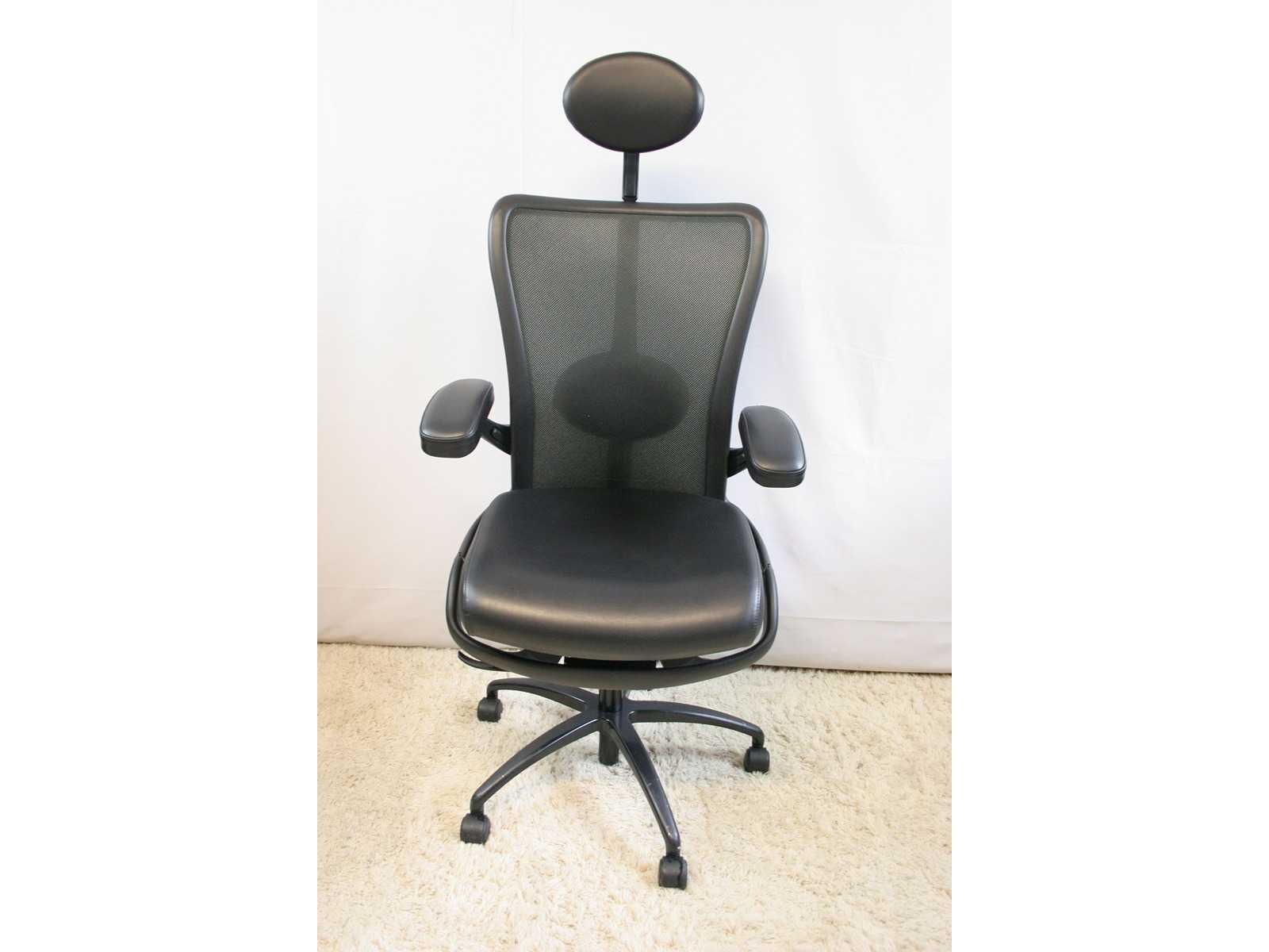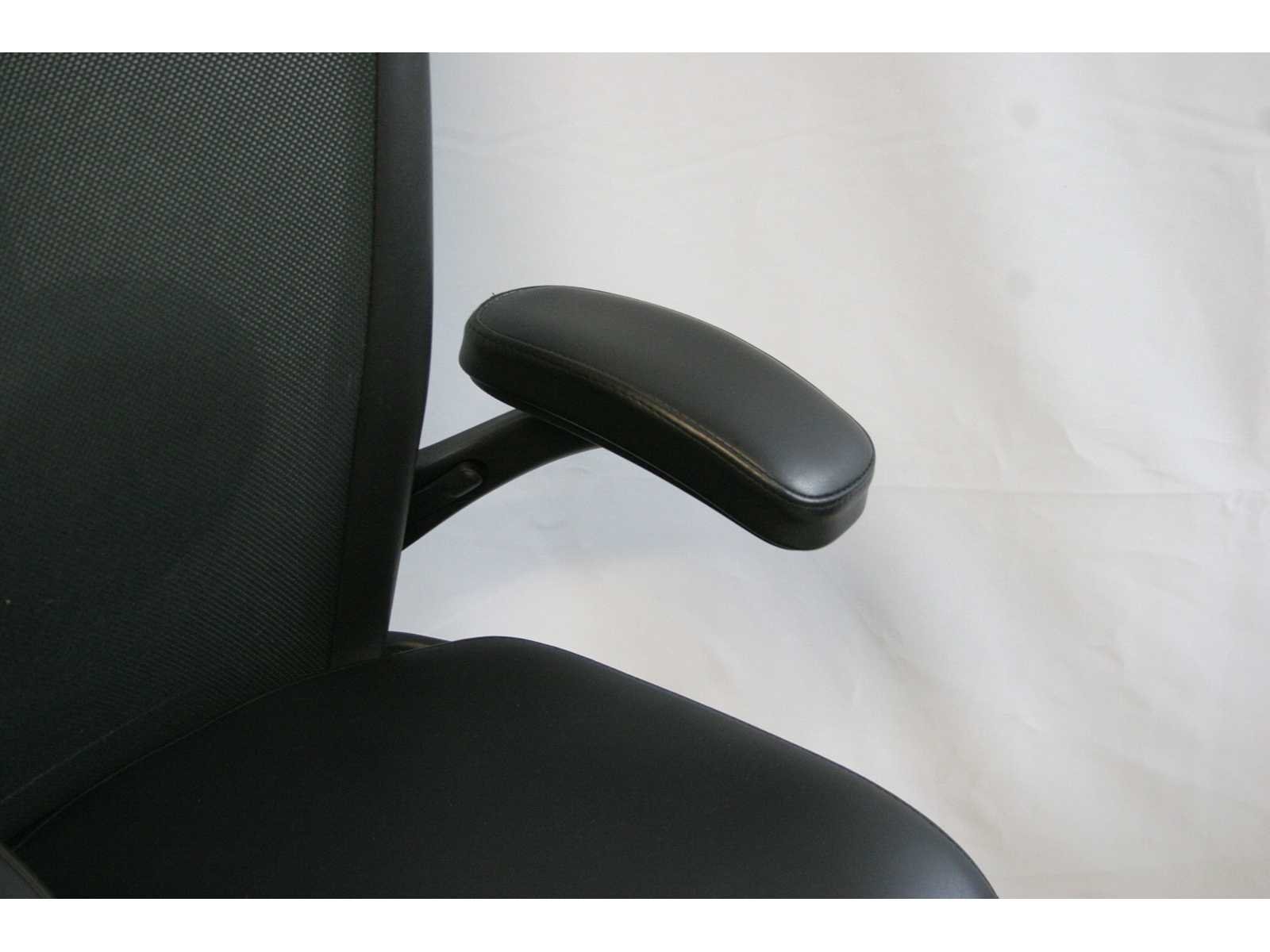 Stervoet in aluminium kleur Zwart voorzien van standaard zwenkwielen, rugleuning bekleed met netweave kleur Zwart, zitting in leder kleur Zwart, in hoogte verstelbaar, verstelbare hoofdsteun, synchrone mechanisme met gewichtsinstelling, instelbare zitdiepte, 4 D armleuningen met zachte opdek bekleed met leder, in hoogte verstelbare rugleuning, verstelbare lendesteun, in goede staat, technisch nazicht en onderhoud gehad, gereinigd No Merk: König & Neurath Kleur: Zwart Gewicht: 40kg Breedte: 80cm Hoogte: 120cm Diepte: 80cm Materiaal: Metaal, aluminium, kunststof, stof, leder