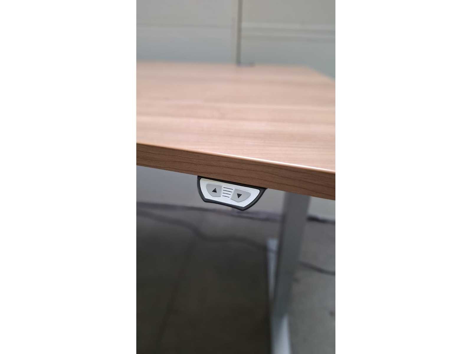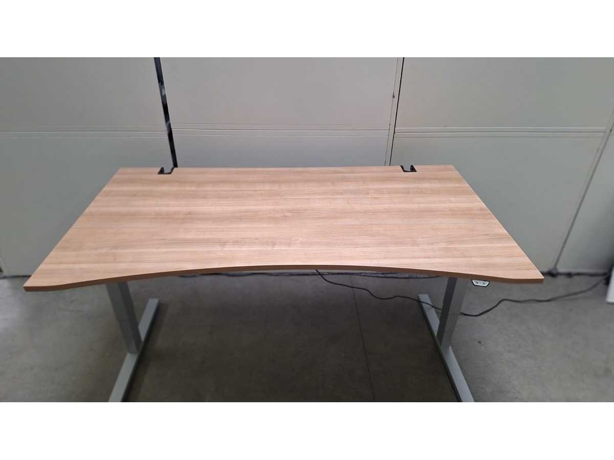 Elektrisch in hoogte verstelbaar (650 - 1300 mm) onderstel in metaal kleur alu, ergonomisch gevormd blad in melamine kleur Havanna, in zeer goede staat enkel afdekklepjes van de kabeldoorvoeren ontbreken (zie foto's) No Merk: CEKA Zit-sta: true Elektrisch verstelbaar: true Kleur: alu - havanna Gewicht: 75kg Lengte: 180cm Hoogte: 65-130cm Diepte: 100cm