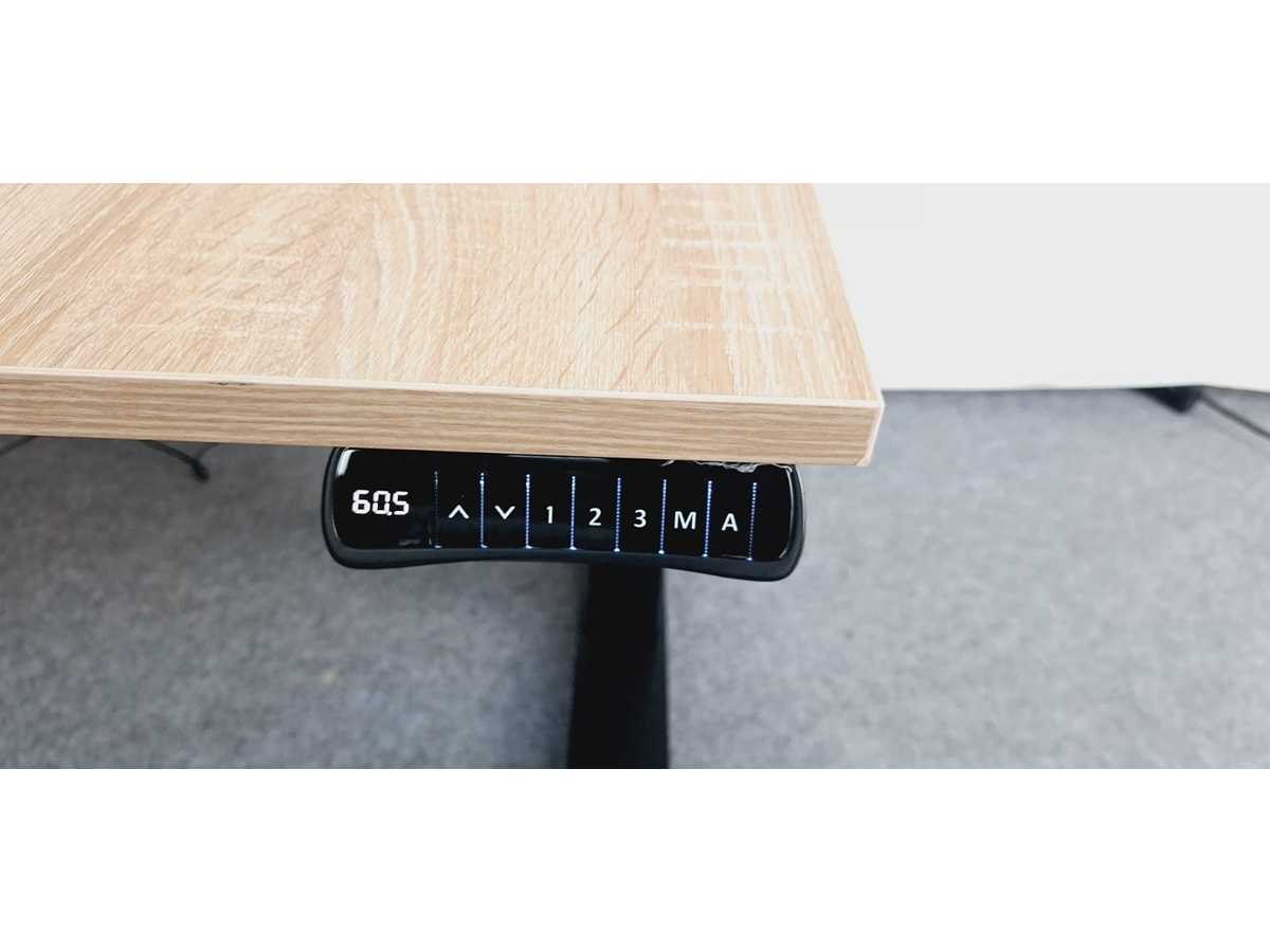 Loctek Motion ET223 onderstel in metaal kleur Zwart, max. Load Capacity 125kg, 3 fase, 2 motoren, hoogte verstelling van 580 - 1230 mm met veiligheid, blad in melamine kleur Robson Eik, elektronische bediening met hoogte weergave en memory, Nieuw, gemonteerd! No Merk: Loctek Type: ET223 Zit-sta: true Elektrisch verstelbaar: true Kleur: Zwart-Robson Eik Gewicht: 50kg Lengte: 180cm Hoogte: 58-123cm Materiaal: Metaal, kunststof, hout, melamine Diepte: 80cm