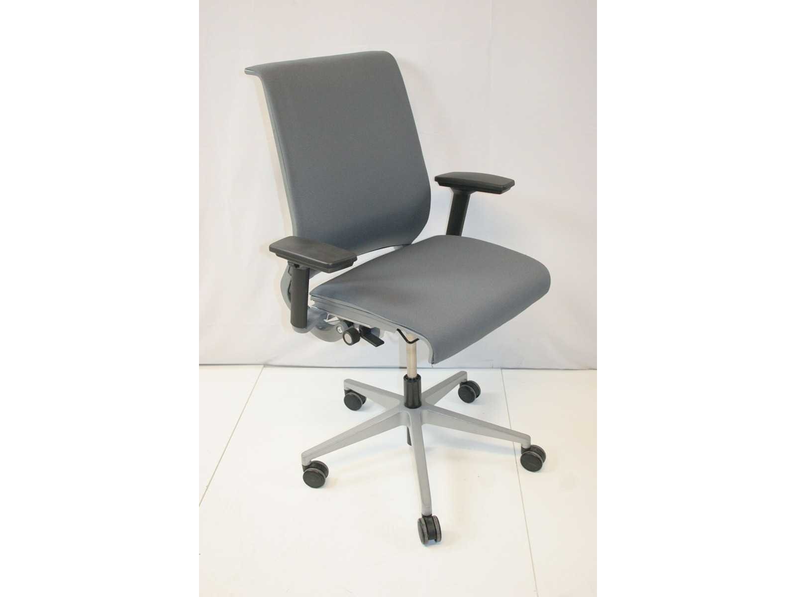 Stervoet in kunststof kleur Alu voorzien van standaard zwenkwielen, bekleding in stof kleur Grijs, in hoogte verstelbaar, synchroon mechaniek met gewichtsinstelling, in hoogte verstelbare armleuningen, in hoogte verstelbare lendesteun, instelbare zitdiepte, bekleding chemisch gereinigd, stoel gecontroleerd en onderhoud gehad, zeer lichte gebruikssporen mogelijk , foto's indicatief. No Merk: Steelcase Type: Think Kleur: Grijs Gewicht: 120kg Breedte: 70cm Hoogte: 100cm Diepte: 70cm Materiaal: Metaal, aluminium, kunststof, stof