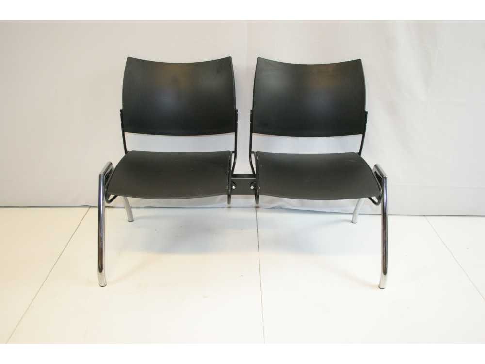Onderstel in metaal kleur zwart, poten in metaal hoogglans verchroomd, zitting en rugleuning in kunststof kleur zwart, gebruikssporen aanwezig No