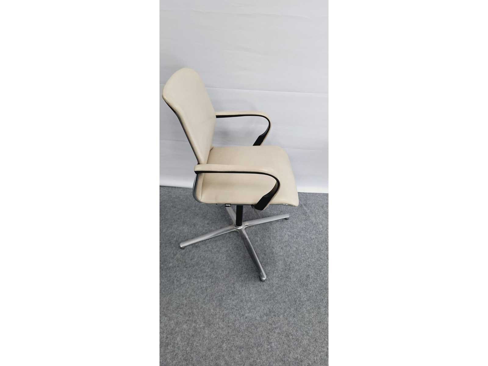 Design vergaderset BENE bestaande uit 1 x vergadertafel BENE (centrale poot in metaal kleur Zwart, blad in melamine kleur Robson Eik, afm. 800 x 800 x 740 mm (l x d x h)); + 1 x design ontvangststoel BENE Filo (stervoet in gepolijst aluminium, centrale poot in metaal kleur Zwart, draaibaar, zitting in leder kleur zwart, rugleuning in netwaeve kleur Zwart, armleuningen in kunststof kleur Zwart, toonzaal model in zeer goede staat) + 1 x design ontvangststoel BENE Filo (stervoet in gepolijst aluminium, centrale poot in metaal kleur zwart, draaibaar, zitting in leder kleur Beige, rugleuning bekleding in leder kleur Beige, armleuningen in leder kleur Beige, gebruikssporen mogelijk No Merk: BENE-Pedrali Kleur: Zwart, Robson Eik, beige Gewicht: 100kg