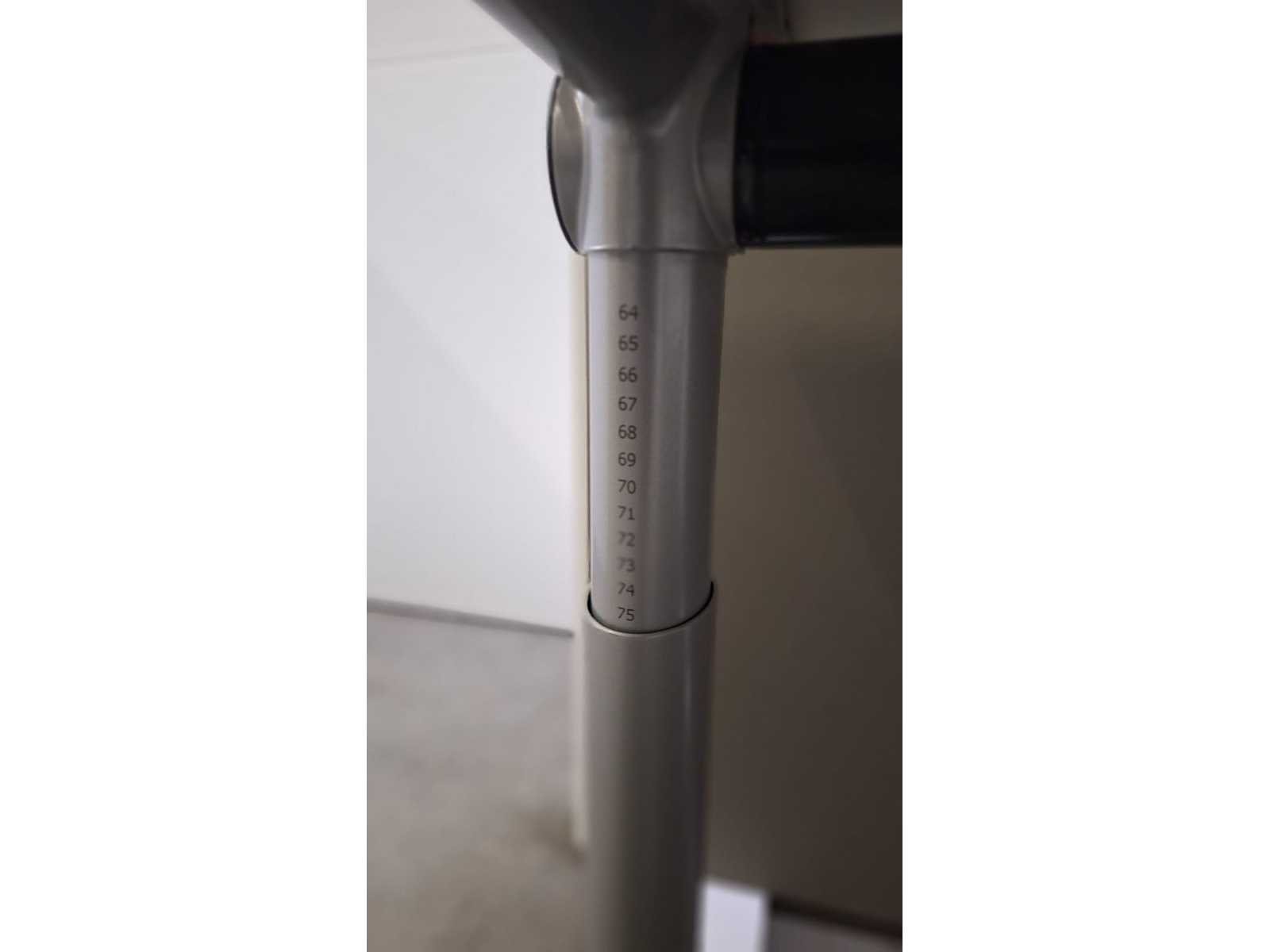 In hoogte verstelbaar onderstel in metaal kleur Alu, werkblad in melamine kleur Wit, bijpassend ladenblok in metaal kleur Alu voorzien van 1 gewone lade + 1 dossierlade, lichte gebruikssporen mogelijk No Merk: Ahrend Type: 500 Kleur: Wit-Alu Gewicht: 80kg Lengte: 160cm Hoogte: 65-82cm Materiaal: Metaal, kunststof, hout, melamine Diepte: 80cm