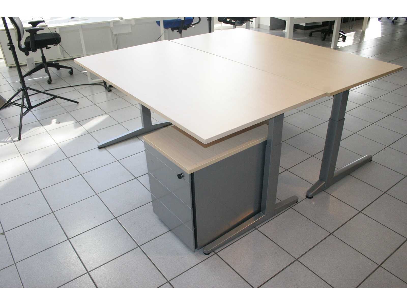 In hoogte verstelbaar (620 - 820 mm) onderstel in metaal kleur alu, werkblad in melamine kleur esdoorn, met bijpassend ladenblok, lichte gebruikssporen mogelijk, foto's indicatief. No Merk: Ahrend Type: ESSA Kleur: alu-esdoorn Gewicht: 80kg Lengte: 160cm Materiaal: Metaal, aluminium, kunststof, hout, melemine Diepte: 80cm