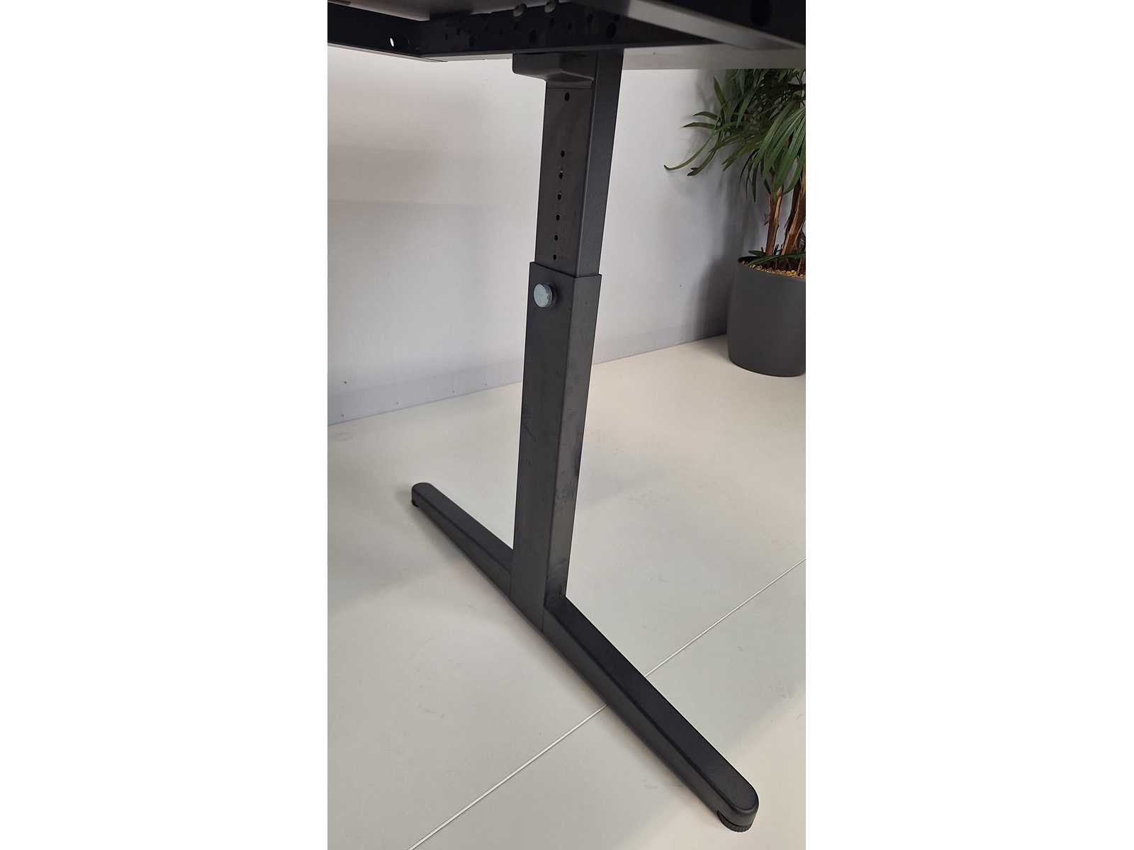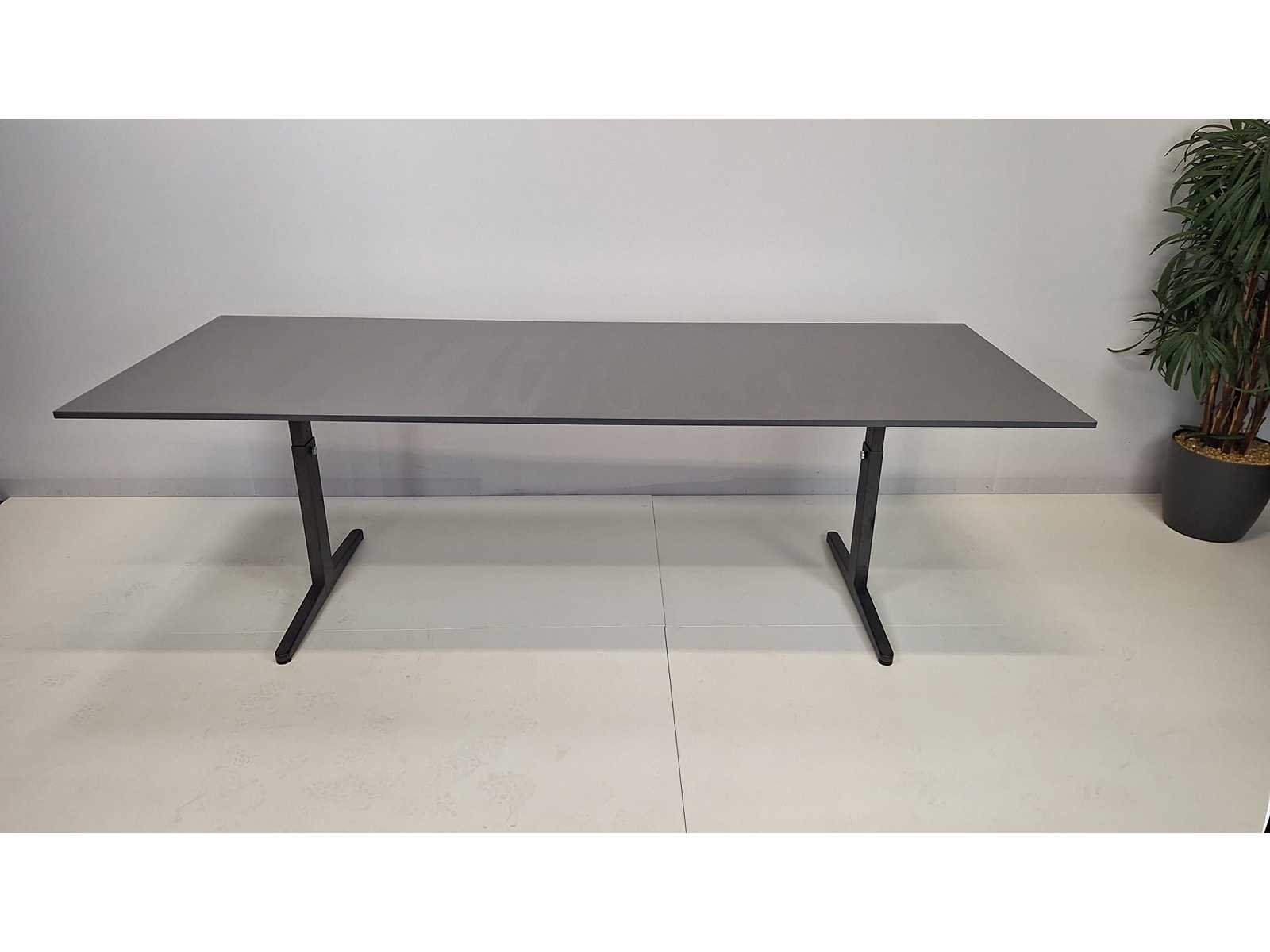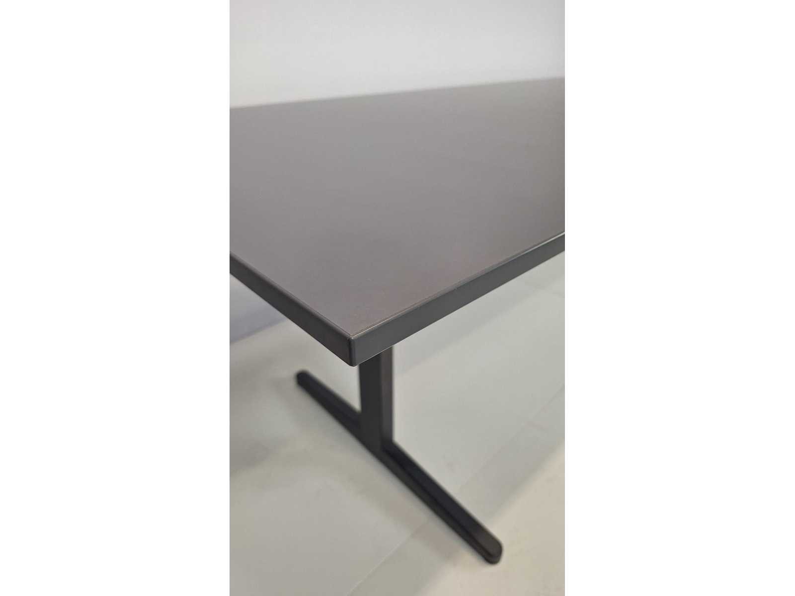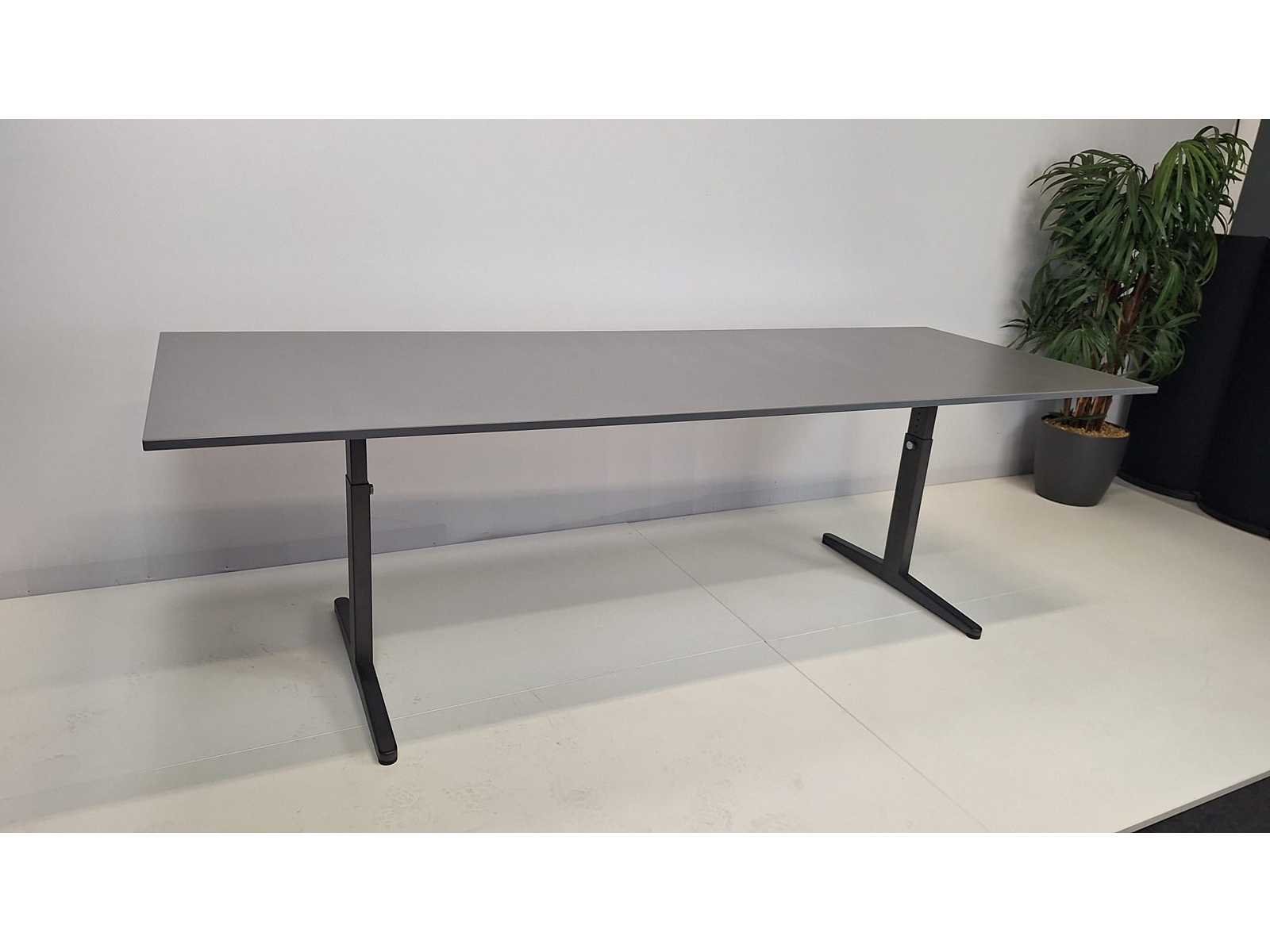 In hoogte verstelbaar (620 - 820 mm) onderstel kleur Zwart, blad in melamine kleur Antraciet, goede staat No Merk: Ahrend Kleur: Zwart-Antraciet Gewicht: 80kg Lengte: 240cm Breedte: 90cm Hoogte: 62-82cm Materiaal: Metaal, aluminum, hout, kunststof, melamine